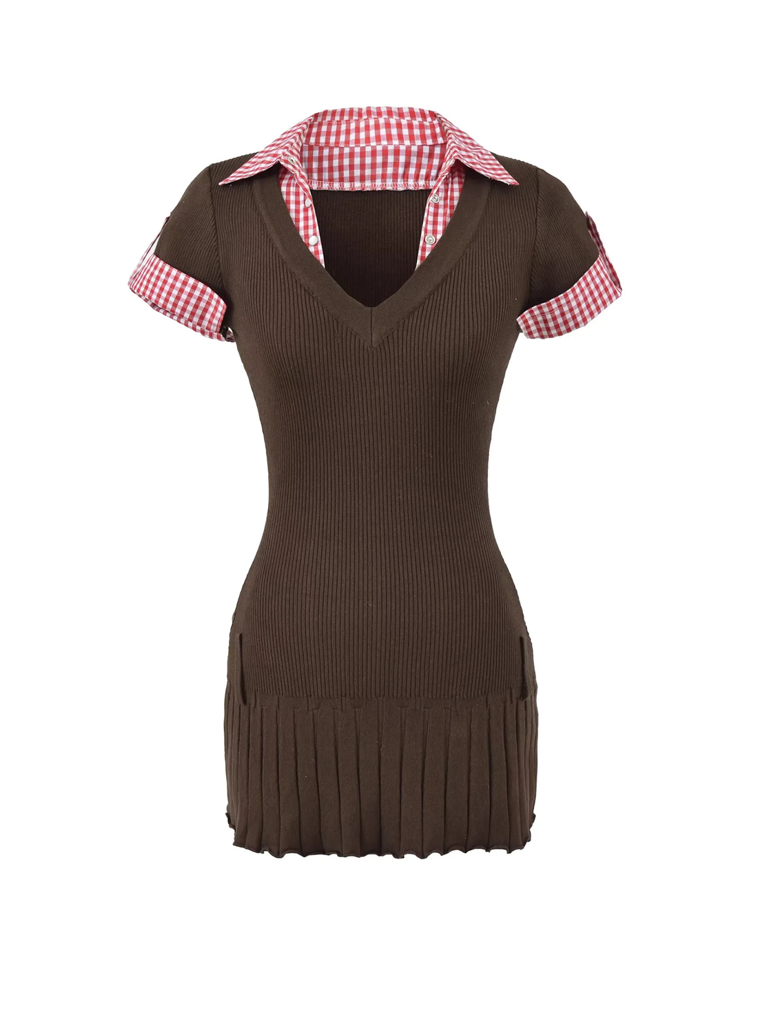 Preppy meets playful in this charming fitted knit mini dress. It features a ribbed V-neck...