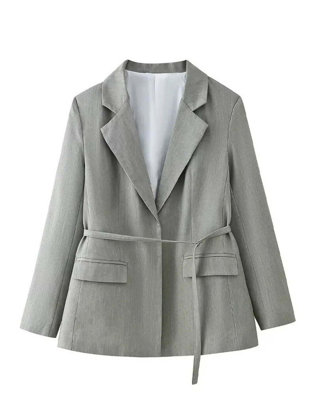 Embrace sophisticated style with the Uriah Tie-Waist Blazer, a modern essential in a sleek charcoal...