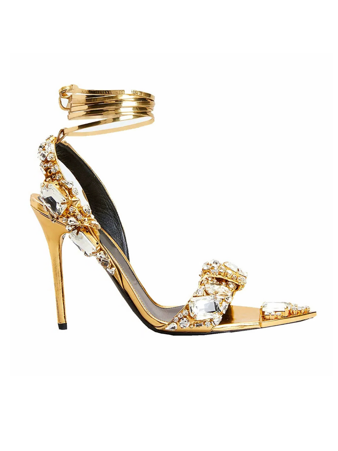 Simplicity meets opulence in the Sirena Golden Strappy Heels. With their sculptural knot front design...