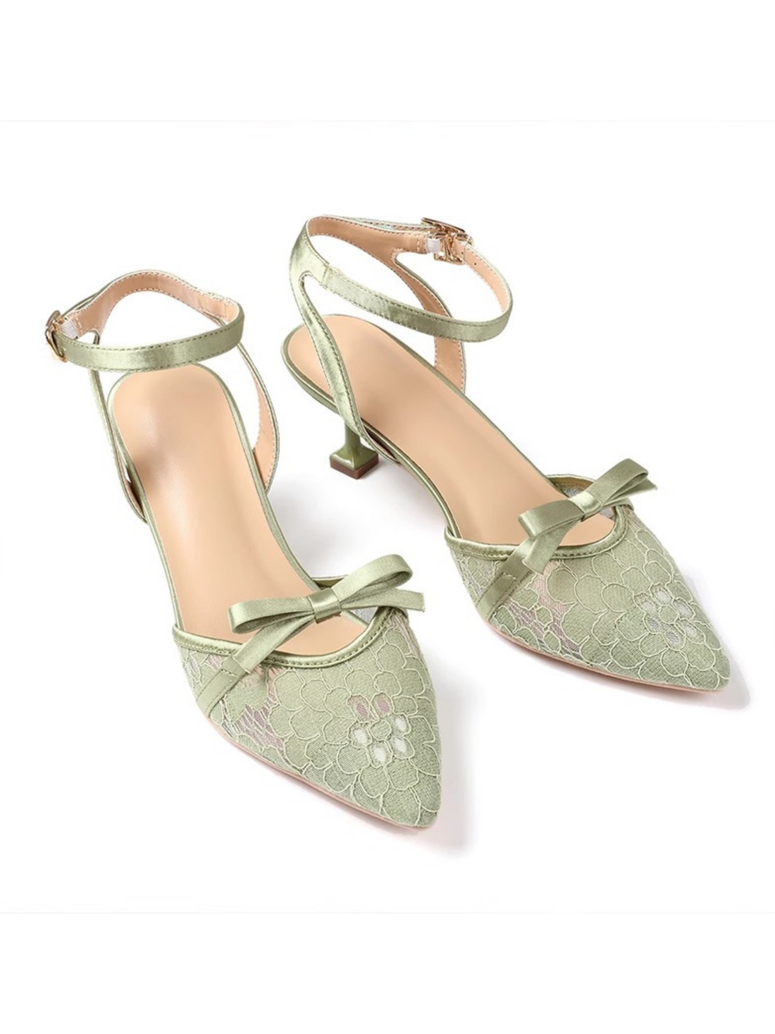 Step into delicate elegance with these sage green lace heels—where vintage charm meets modern femininity....