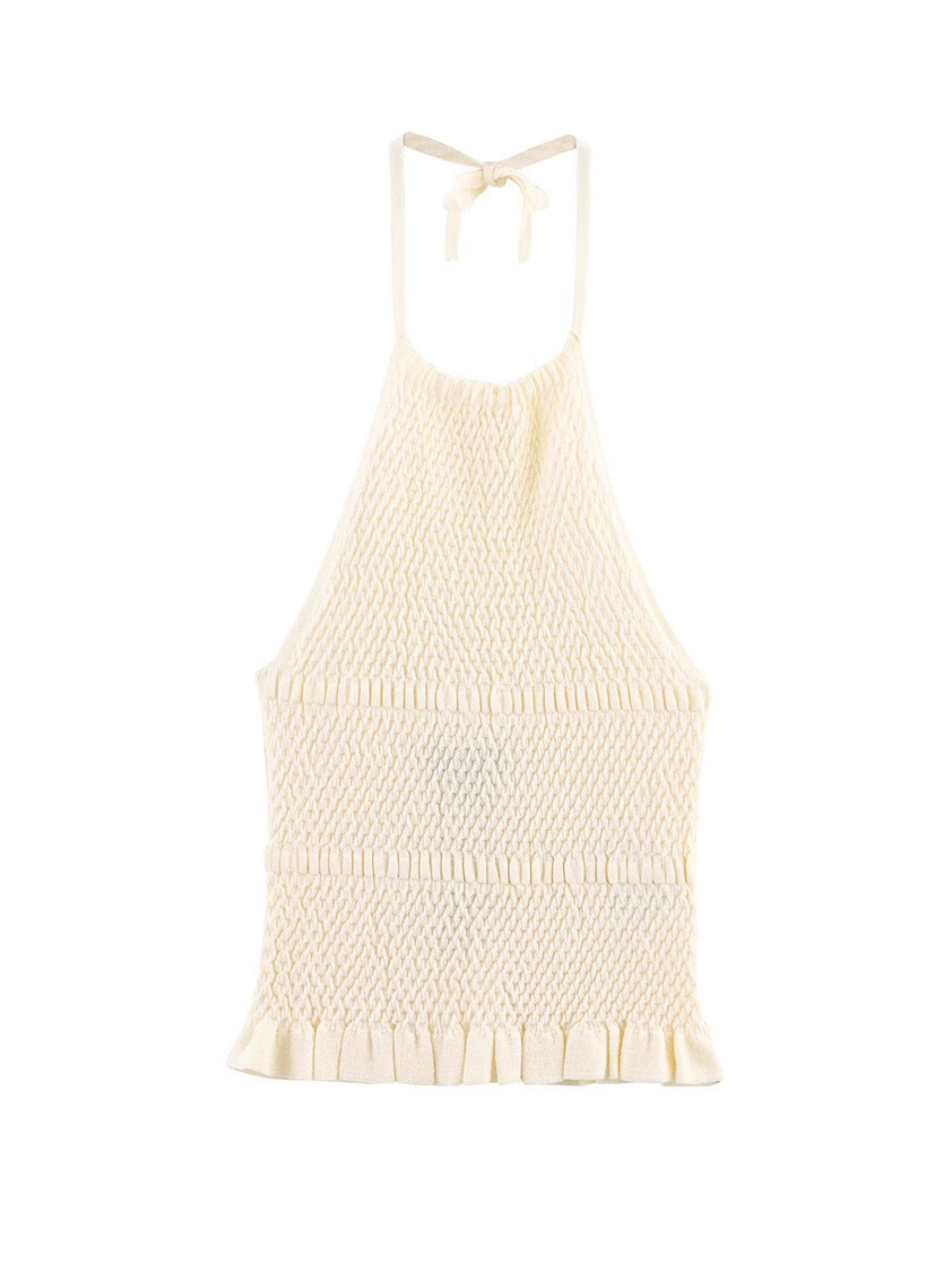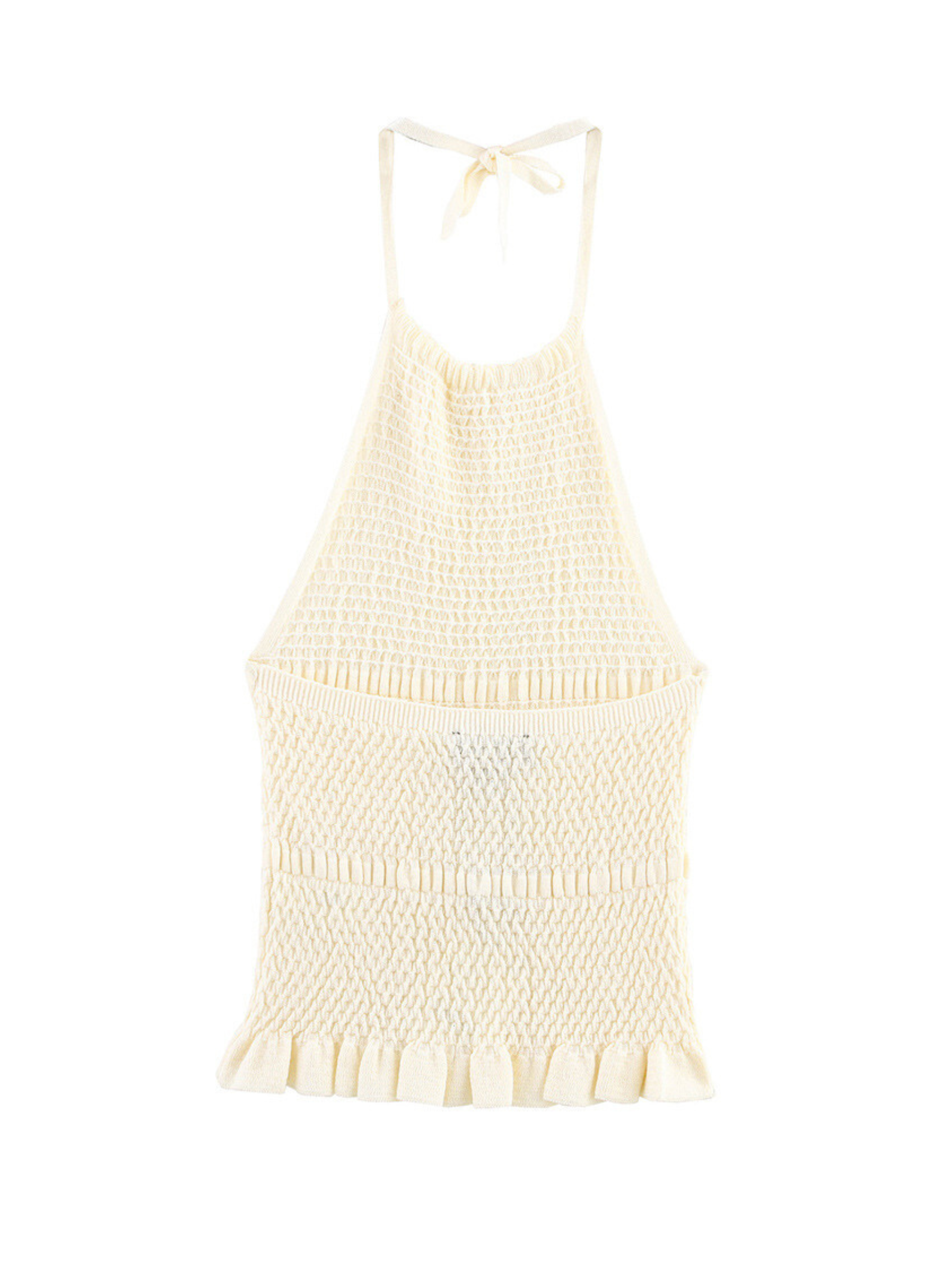 Embrace effortless sophistication with the Aela Knit Halter Top, a chic staple for warm-weather elegance. Crafted in a delicate apricot hue, this piece features a flattering halter neckline and an alluring open-back design that exudes modern allure. Its subtle knitted texture adds a touch of refined comfort, making it an ideal choice for elevated casual looks. Pairs perfectly with high-waisted linen trousers or a flowing maxi skirt for a sophisticated summer ensemble.