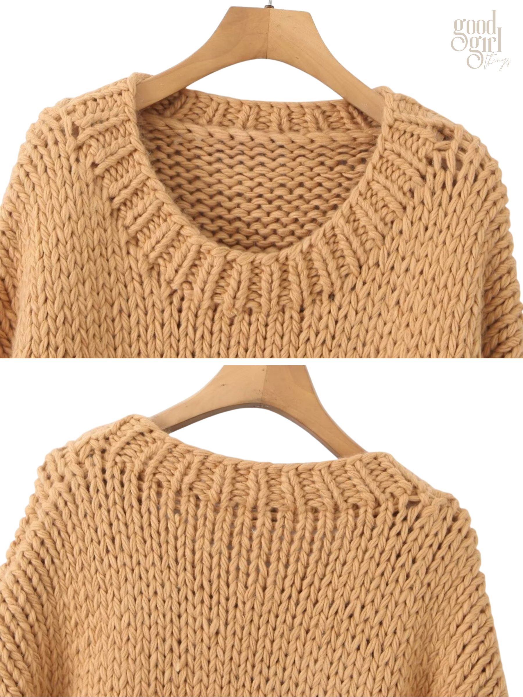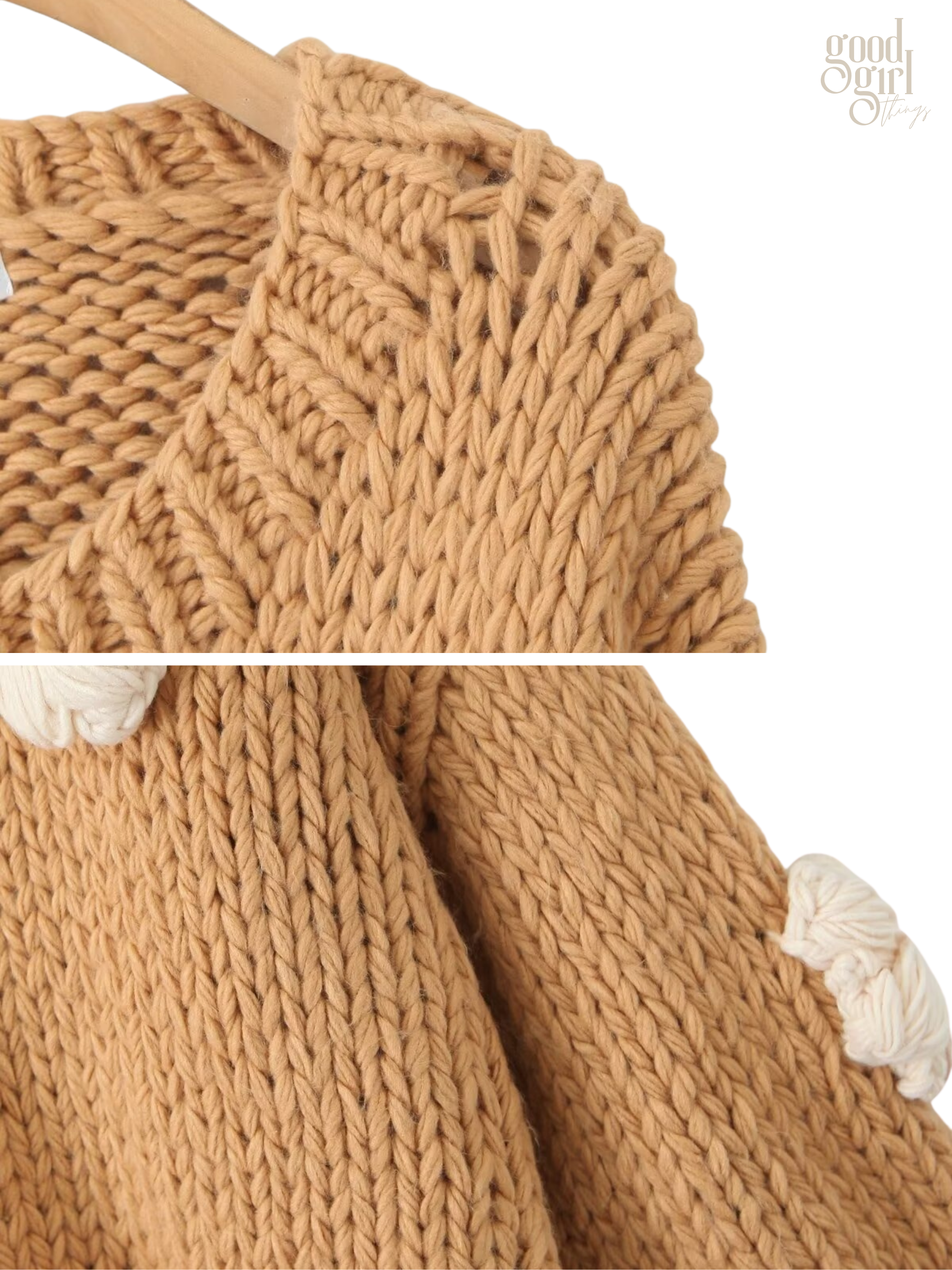 - Chunky knitted texture