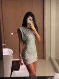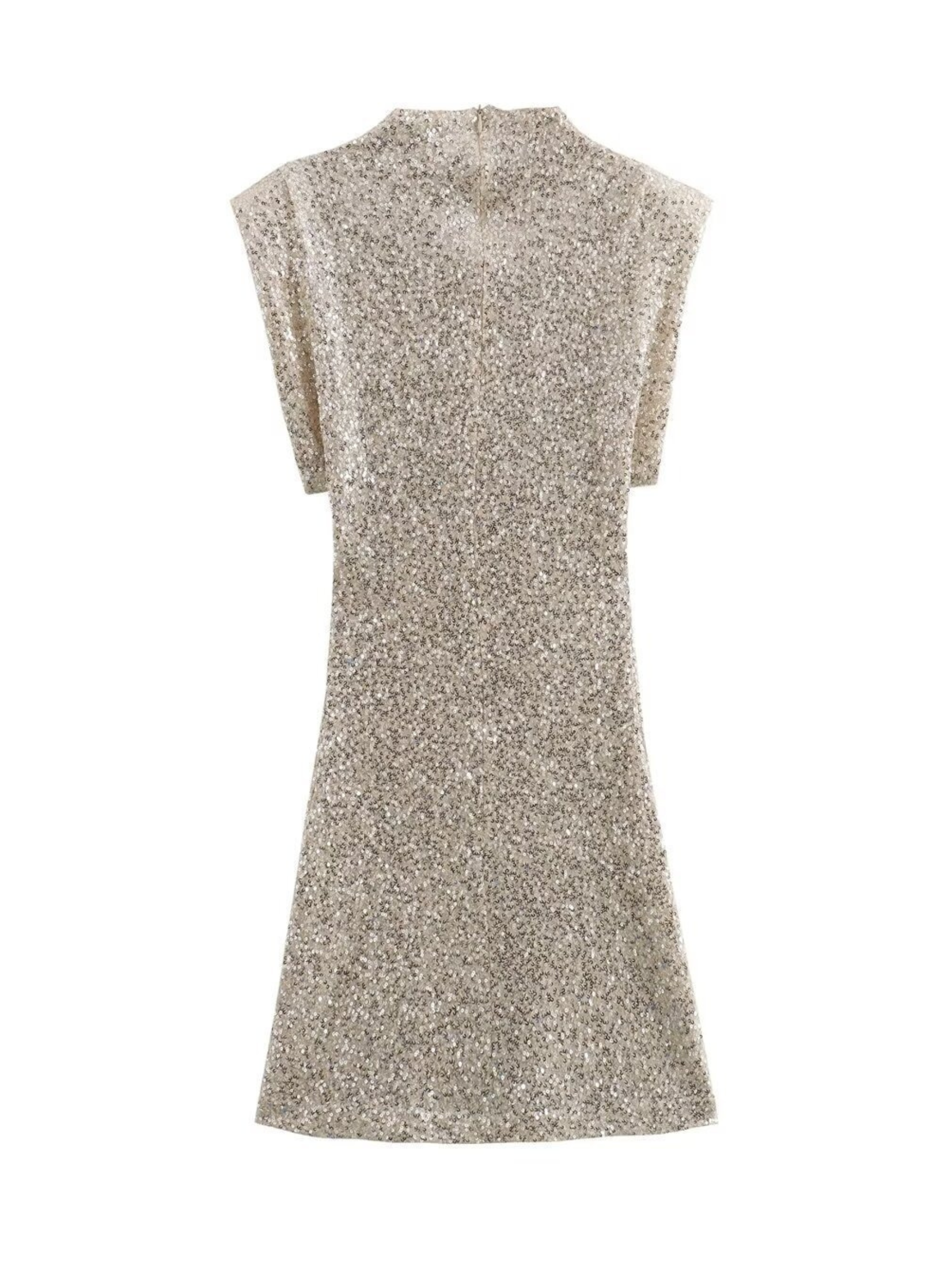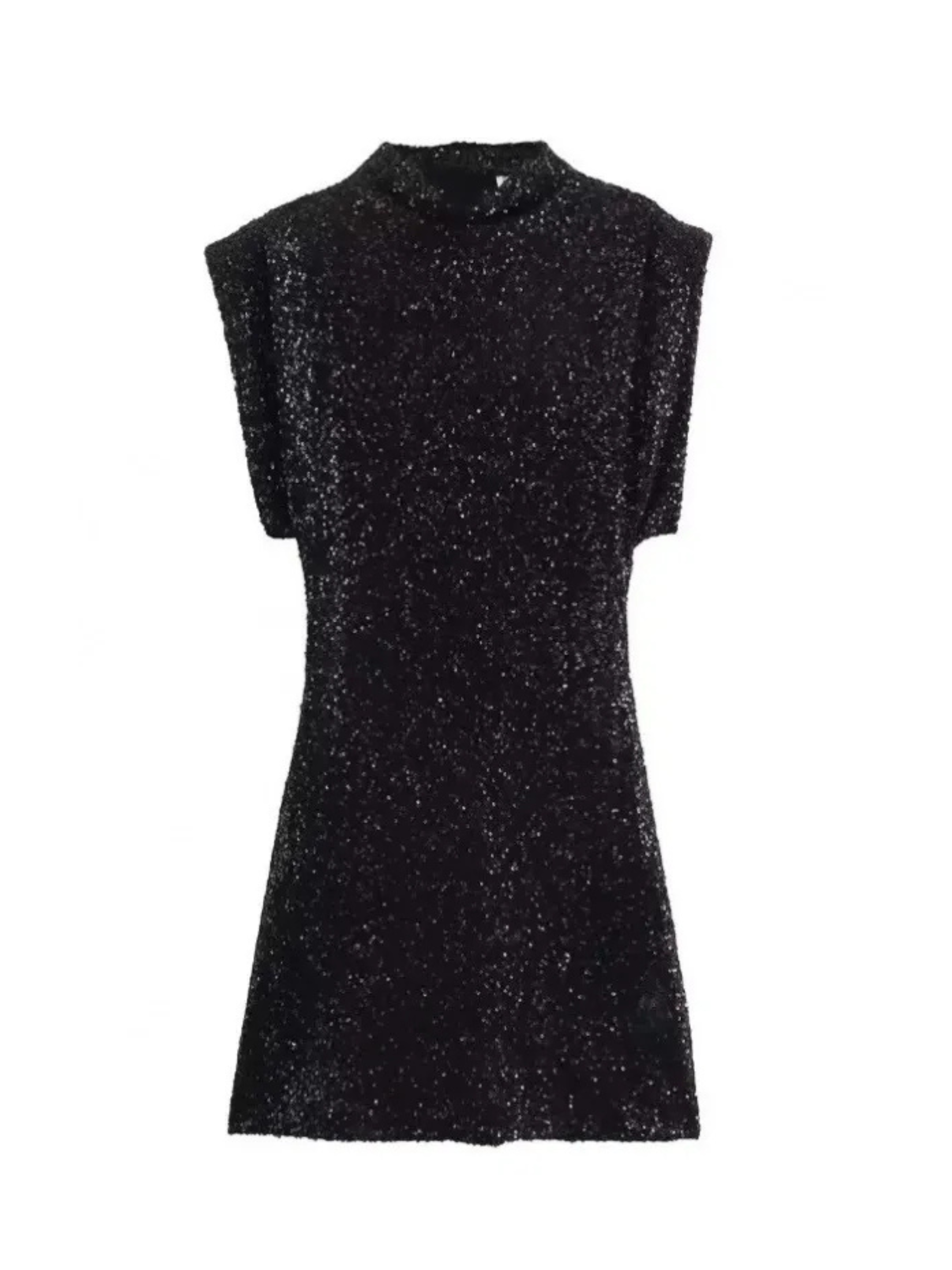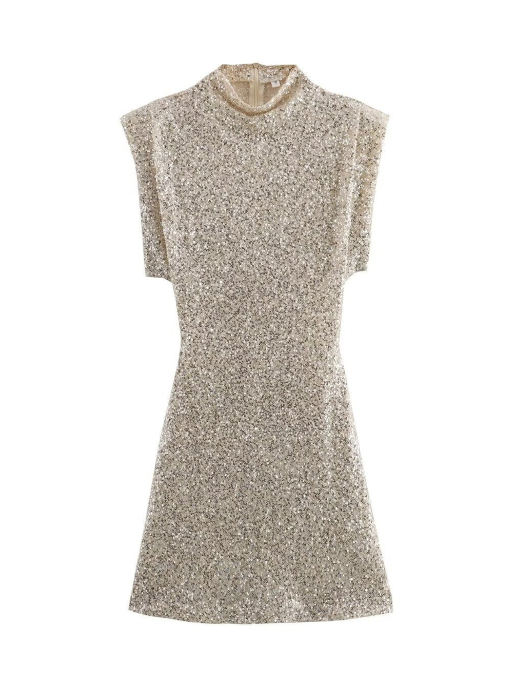Step into the spotlight with the Ameria Sequin Mini Dress, designed to captivate and charm at any special event. This dazzling mini dress features an elegant round neckline and chic short sleeves, perfectly complementing its flattering bodycon silhouette. Adorned entirely with shimmering sequins, it creates a radiant sparkle in both classic black and luxurious beige. Ideal for an evening out, this dress is your go-to for making an unforgettable entrance.