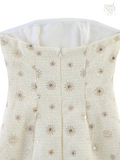 The Annalyse Floral Strapless Mini Dress is a vision of modern romance, designed for unforgettable evenings. This exquisite piece features a flattering strapless neckline and a sculpted bodice that perfectly accentuates the silhouette. Adorned with delicate, three-dimensional floral appliques, it captures an ethereal elegance in a pristine white hue. Pair it with statement heels and a clutch for a show-stopping ensemble.