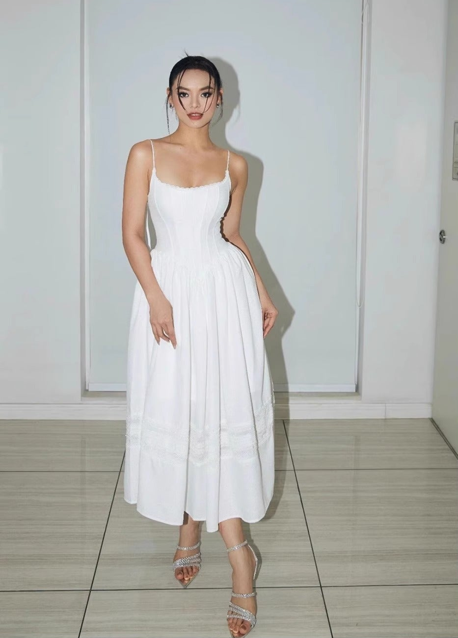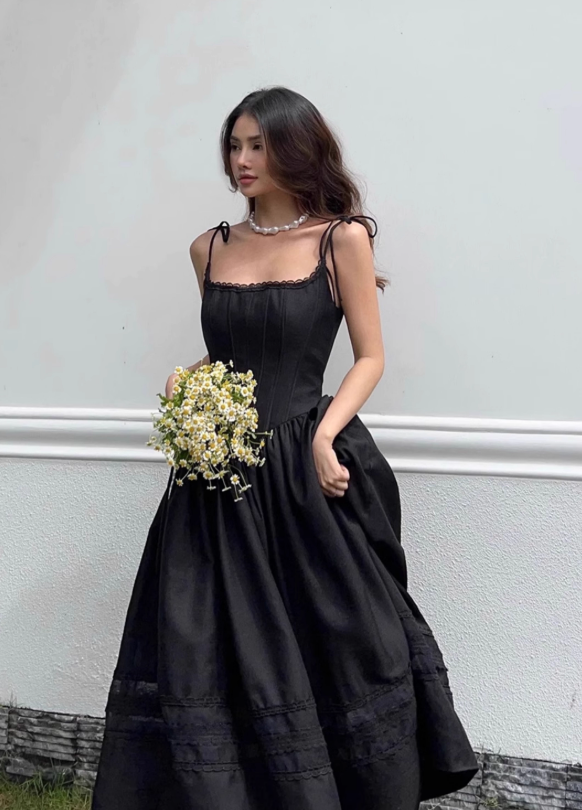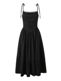 The Arin Lace Midi Dress embodies effortless elegance, designed for the modern romantic. Its graceful square neckline and delicate wide straps frame the décolletage beautifully. Flowing into a timeless A-line silhouette, this dress features intricate lace detailing and subtle tiered accents throughout the skirt, available in classic black and pristine white. Perfect for a sophisticated garden party or a charming holiday escape.