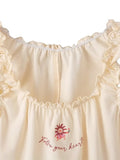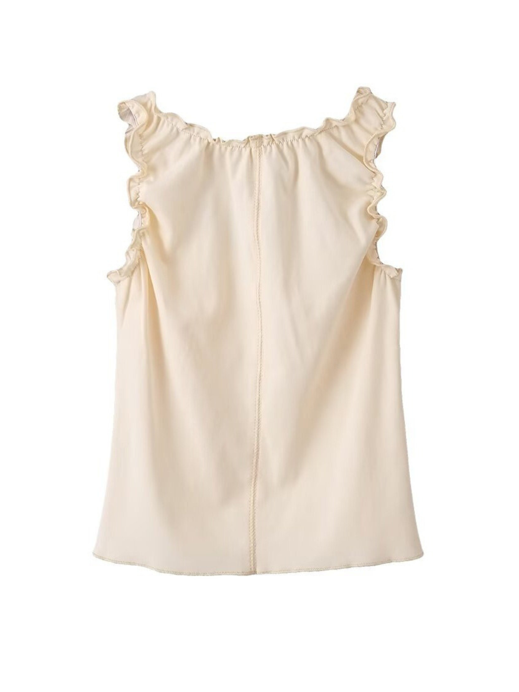Embrace effortless style with the Ayelet Cropped Ruffle Vest, a chic addition to your summer wardrobe. This off-white pullover features a flattering slim fit and a playful cropped silhouette, perfect for sun-kissed days. Delicate double straps and a subtle ruffle trim along the hem add a touch of feminine charm, while a distinctive letter print lends a trendy edge.