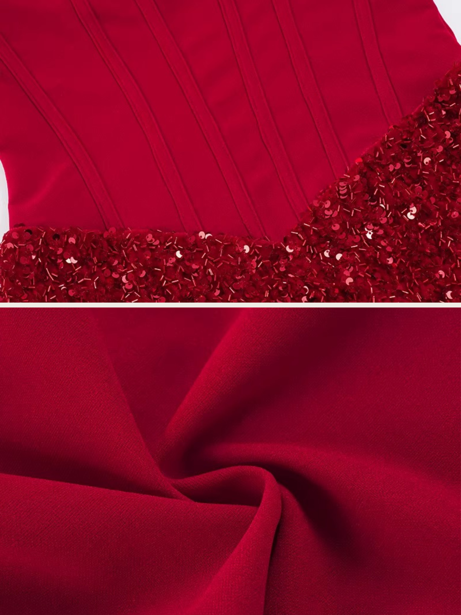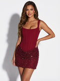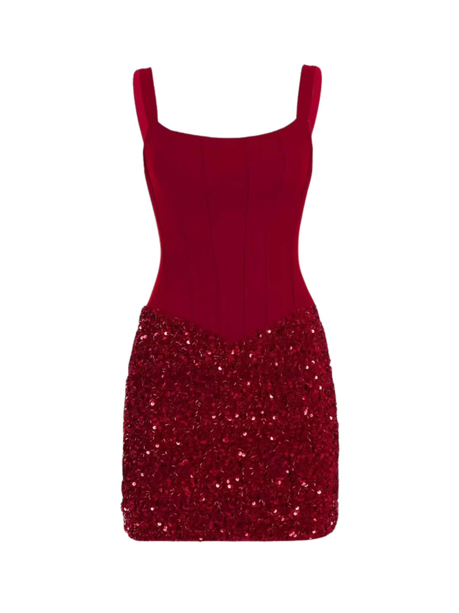 Step into the spotlight with the dazzling Batya Red Sequin Mini Dress. This show-stopping number features a radiant red hue, adorned with shimmering sequin patchwork that catches the light with every move. Designed with sleek spaghetti straps and a flattering bodycon silhouette, it’s crafted to accentuate your figure with effortless elegance. Perfect for making a statement at any evening affair or a vibrant night out.