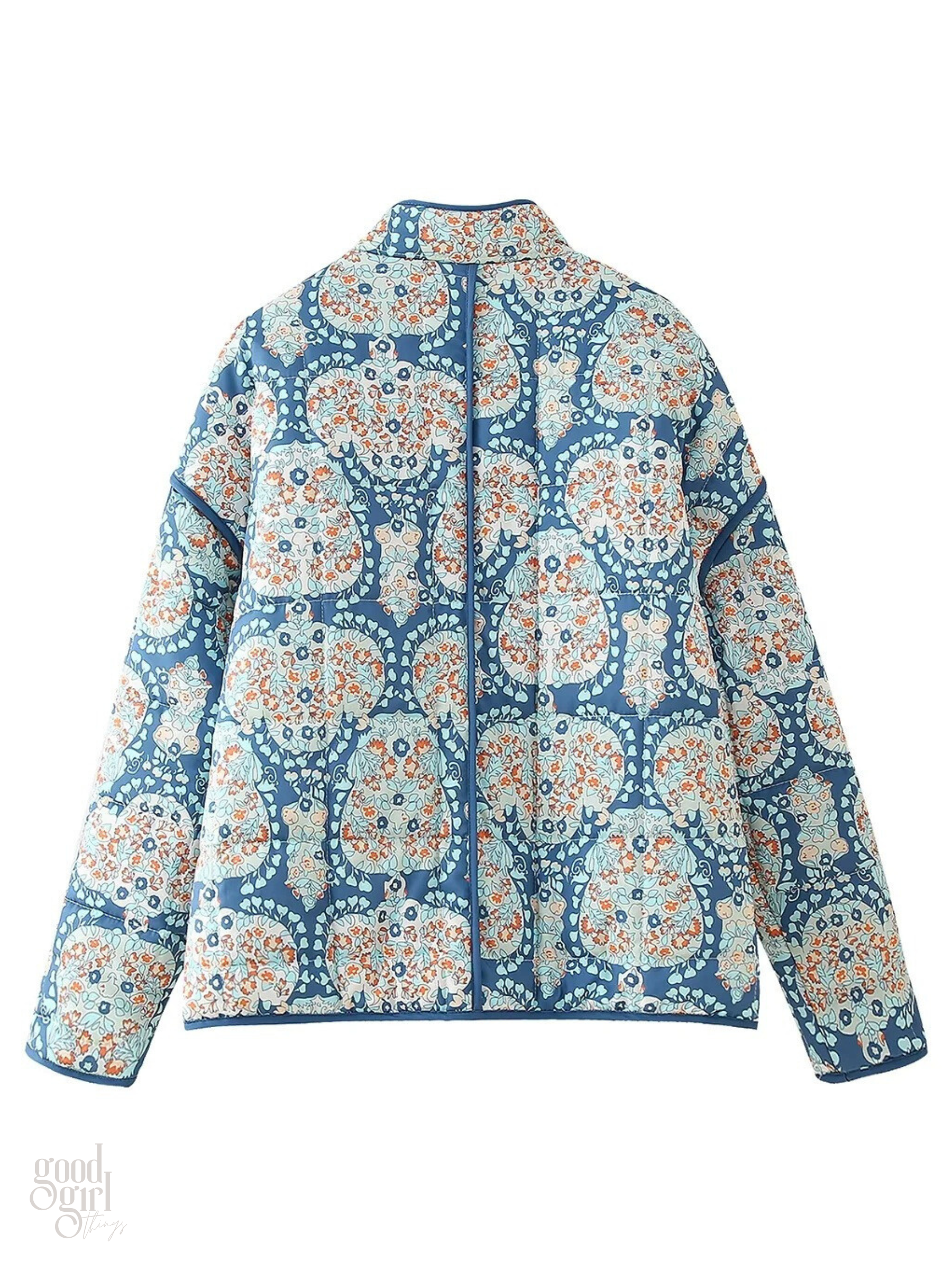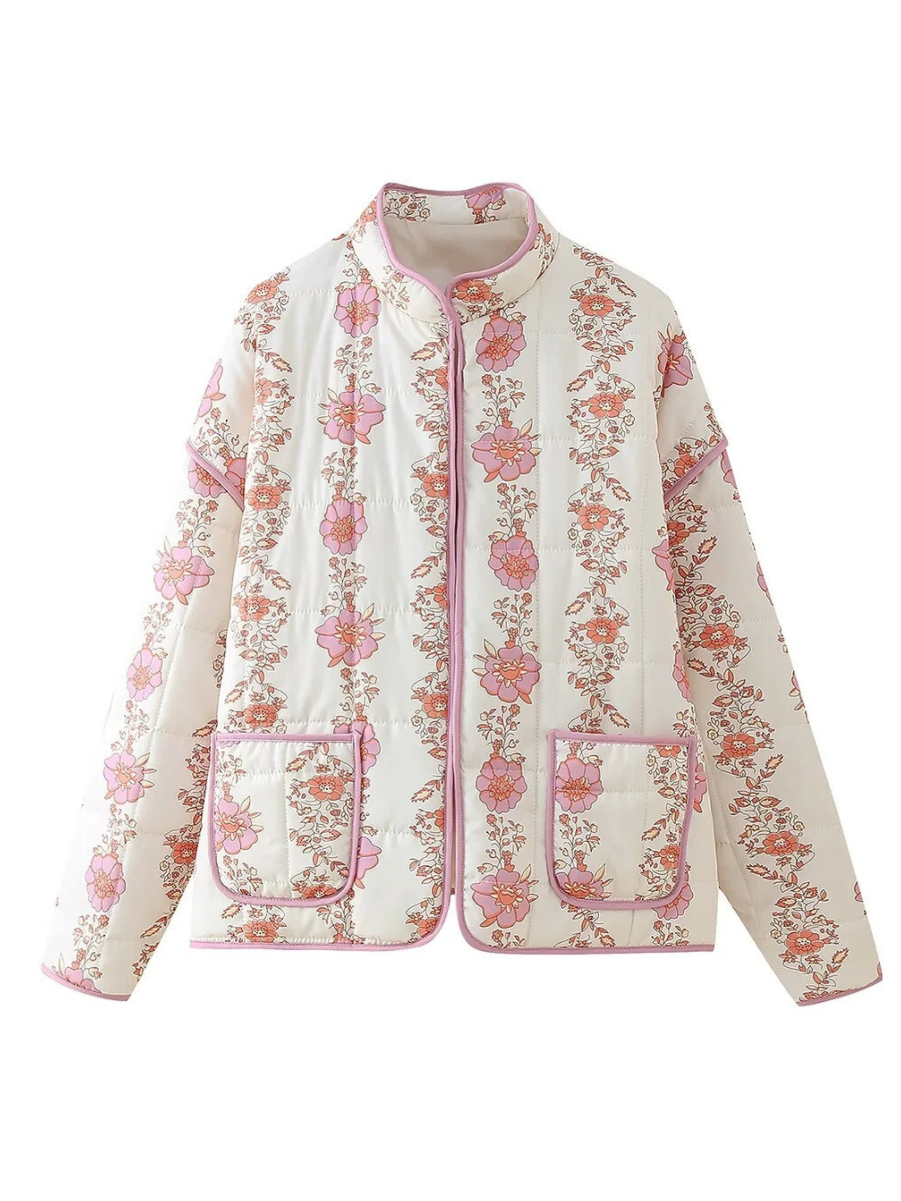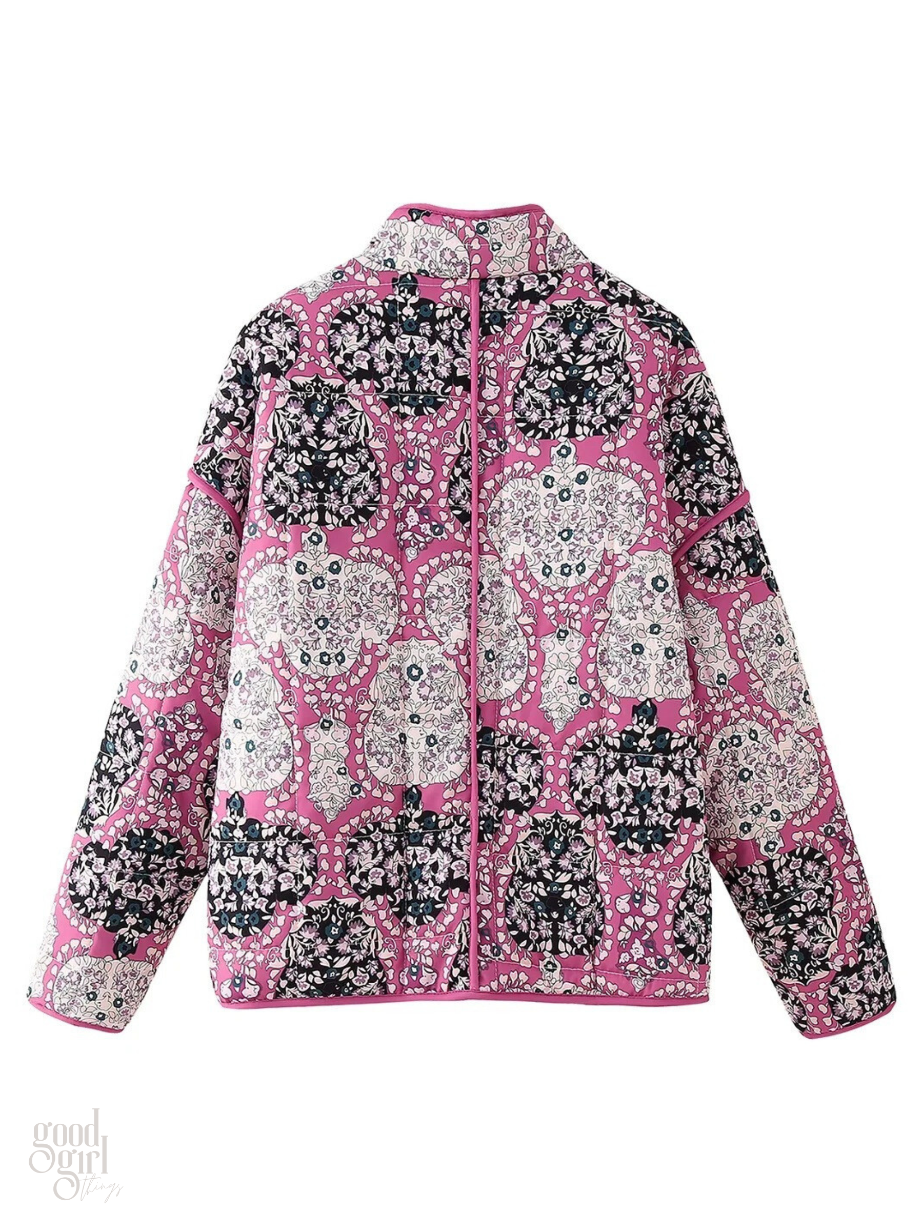 Embrace versatility with the Billie Retro Printed Cotton Jacket, a must-have for dynamic styling. This eye-catching piece features a vibrant floral print on one side, offering a playful and bold statement. Flip it to reveal a sophisticated color-blocked design, providing an entirely different aesthetic. Its relaxed silhouette and unique details ensure a standout look for any occasion. Pairs perfectly with tailored trousers for a polished look or distressed denim for an edgy, street-style vibe.
