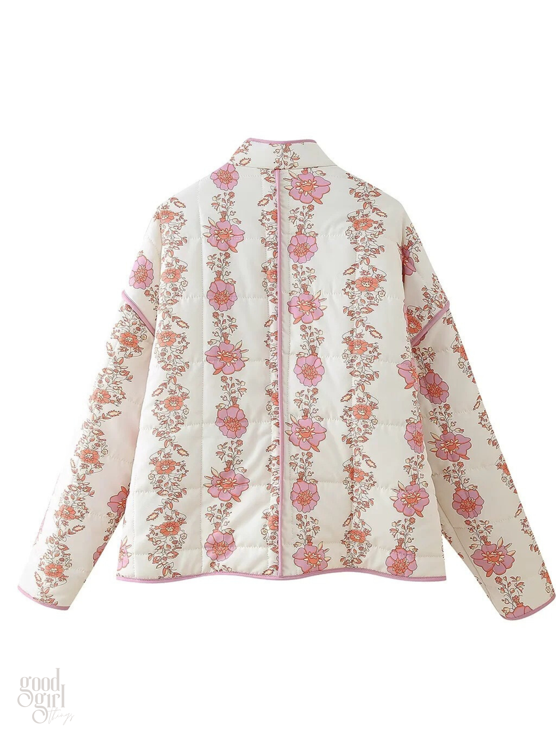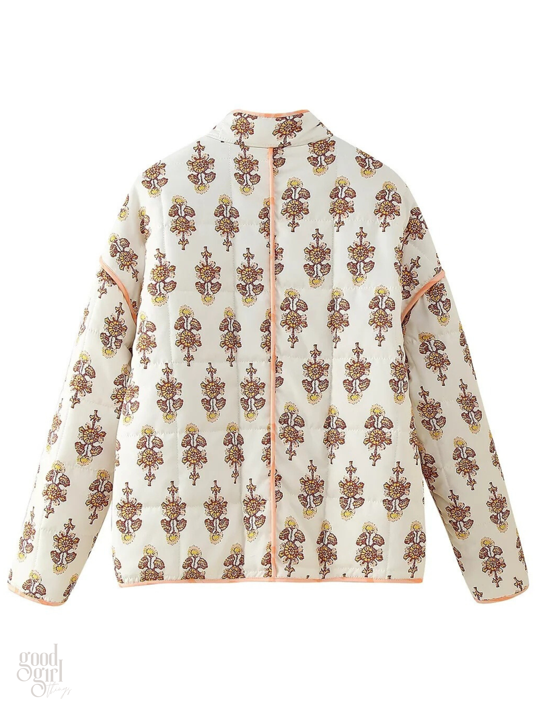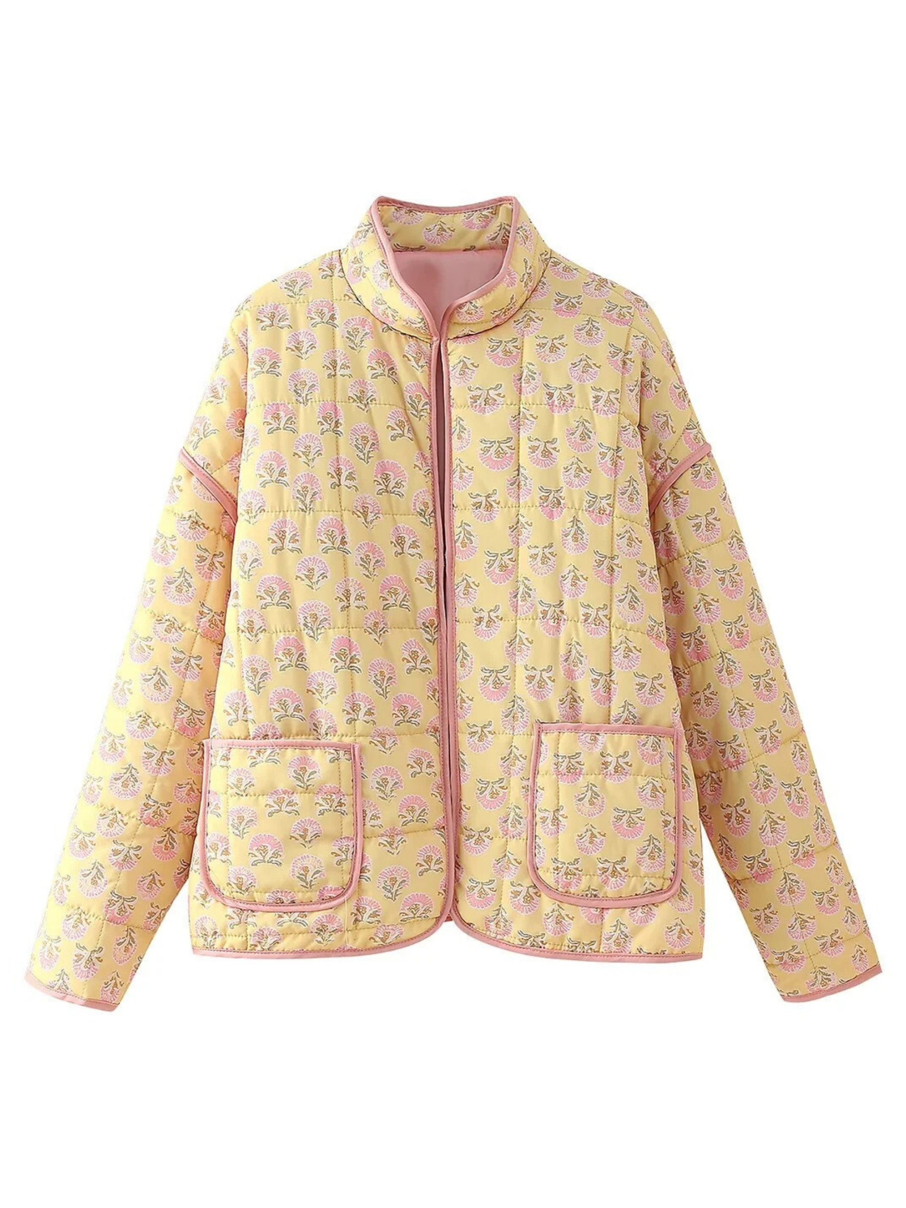 Embrace versatility with the Billie Retro Printed Cotton Jacket, a must-have for dynamic styling. This eye-catching piece features a vibrant floral print on one side, offering a playful and bold statement. Flip it to reveal a sophisticated color-blocked design, providing an entirely different aesthetic. Its relaxed silhouette and unique details ensure a standout look for any occasion. Pairs perfectly with tailored trousers for a polished look or distressed denim for an edgy, street-style vibe.