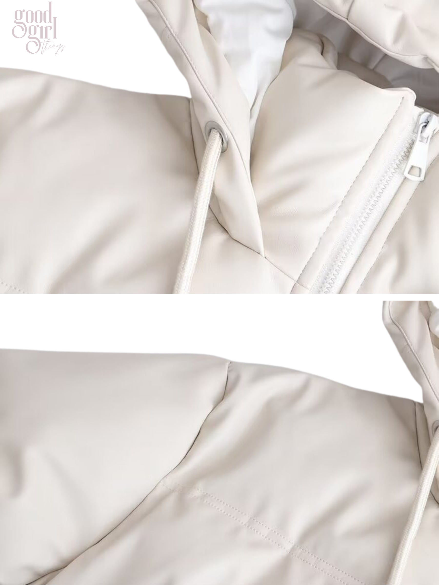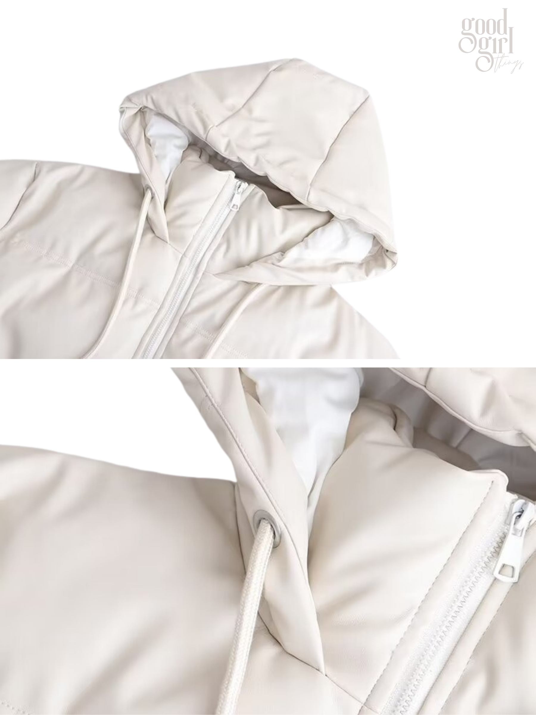 Embrace sophisticated comfort with the Calina Hooded Puffer Jacket, a chic outerwear piece designed for the modern wardrobe. This essential jacket features a cozy hooded design and a stylish quilted texture, perfect for navigating cooler seasons. Available in classic white and black, it offers effortless versatility and a relaxed silhouette.