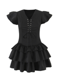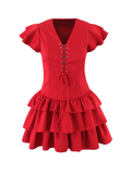 The Eliyanah Flutter Sleeve Mini Dress is an effortlessly charming piece designed for the modern muse. Adorned with delicate ruffle details and a flattering V-neckline, this dress exudes playful elegance. Its short, flirty silhouette in classic black or vibrant red makes it a versatile choice for any sophisticated occasion. Perfect for stepping out with confidence and style.