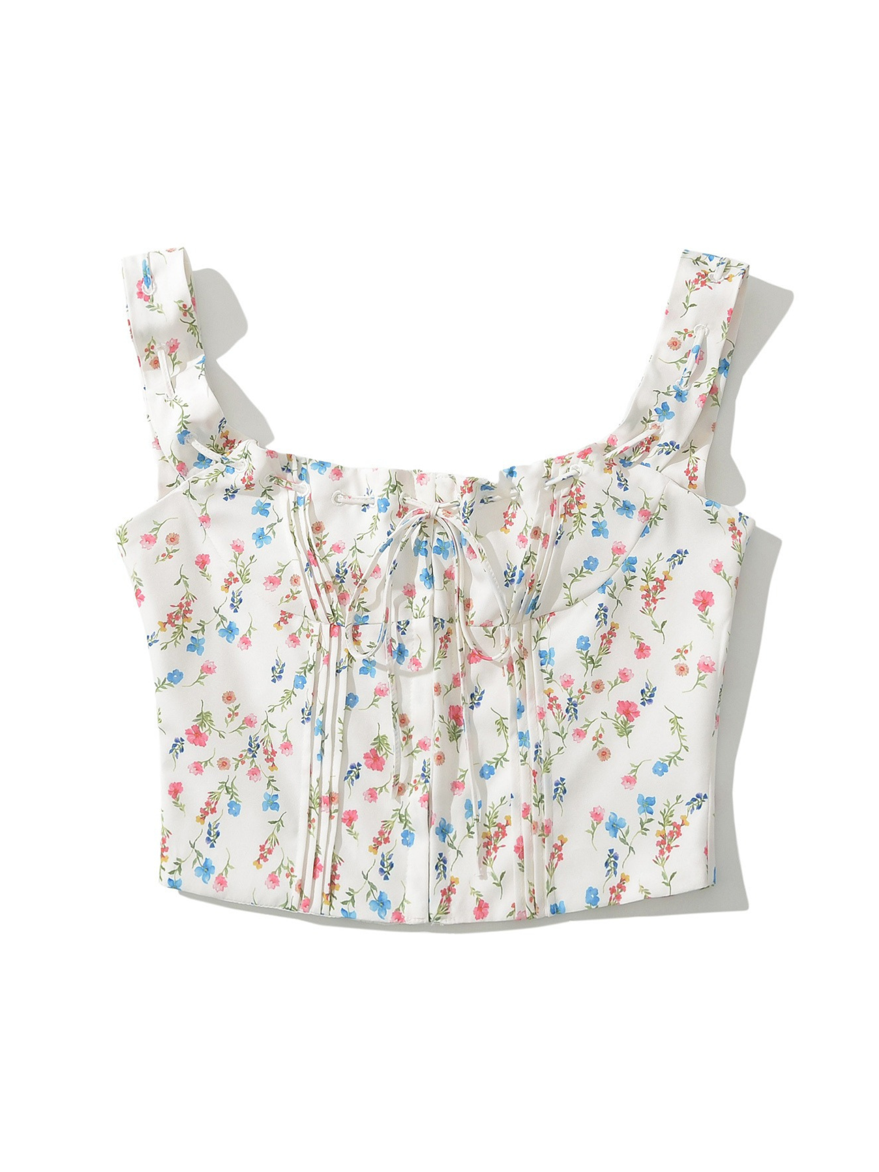 Step into a charming garden daydream with the Evelynn Floral Cami Top, a delicate piece that perfectly captures effortless elegance. This charming top features a sophisticated square neckline and slender straps, designed to highlight your décolletage beautifully. Adorned with a captivating floral print, its cropped silhouette offers a fresh and playful touch, making it an essential for your warm-weather wardrobe. Pair it with high-waisted denim for a casual yet chic look, or a flowy skirt for a more romantic ensemble.