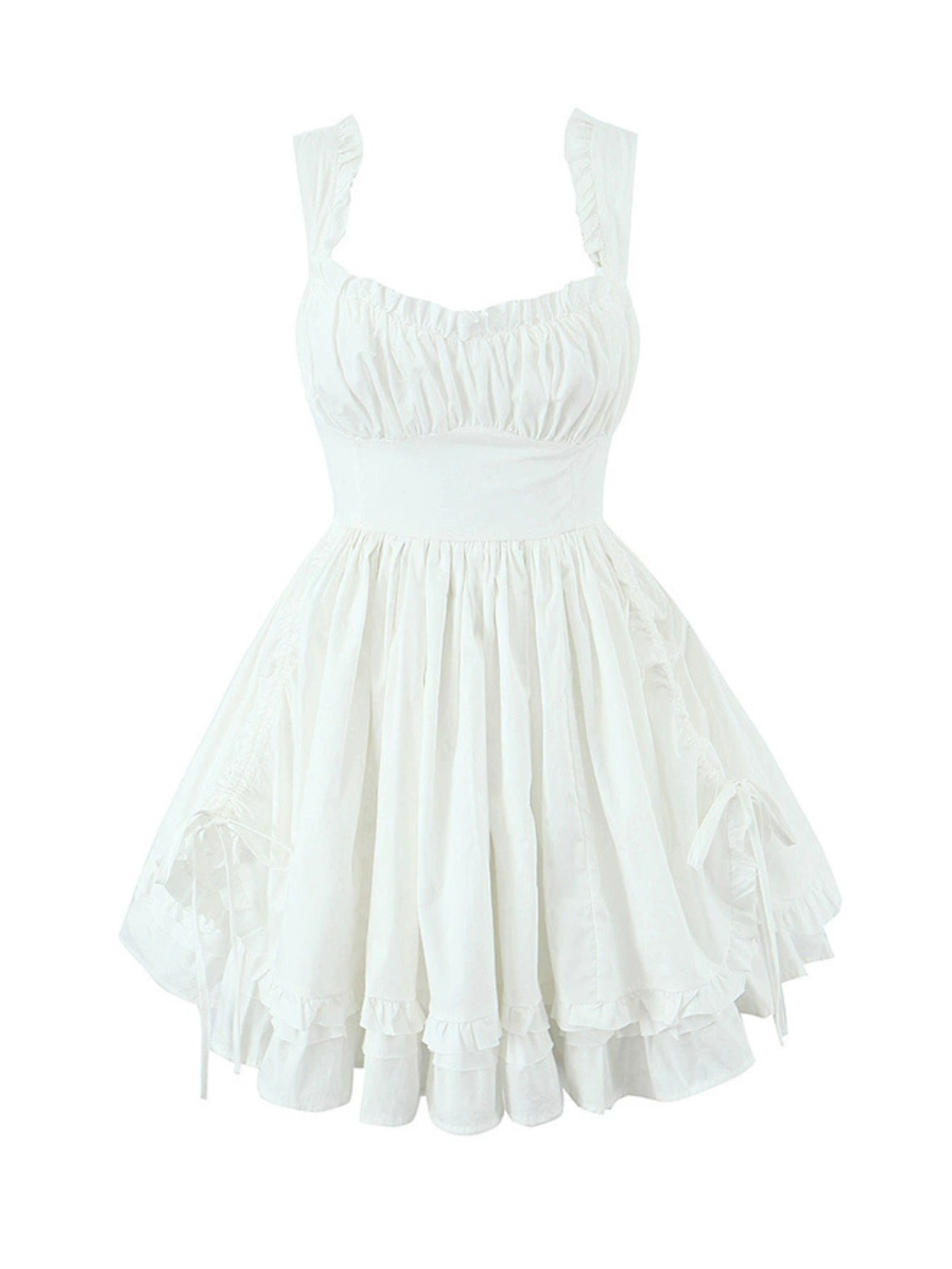 Embrace whimsical elegance with the Ezri Layered Mini Dress, a vision in pristine white. This ethereal piece captures a dreamy aesthetic with its delicate silhouette and graceful construction. Perfect for sun-drenched days or enchanting evenings, its charming design radiates effortless sophistication.