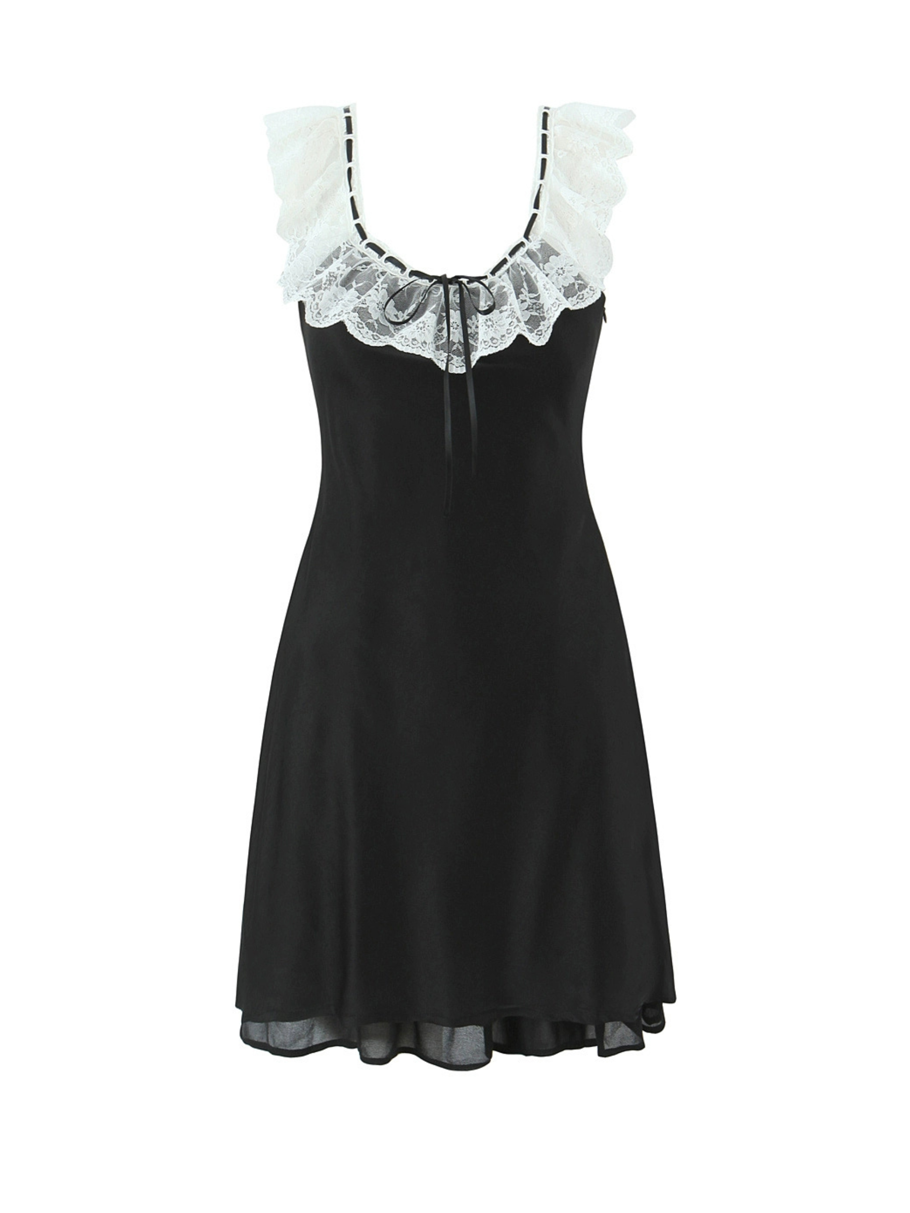 - Intricate lace splicing adds a touch of sophisticated charm.