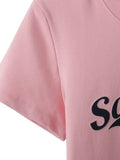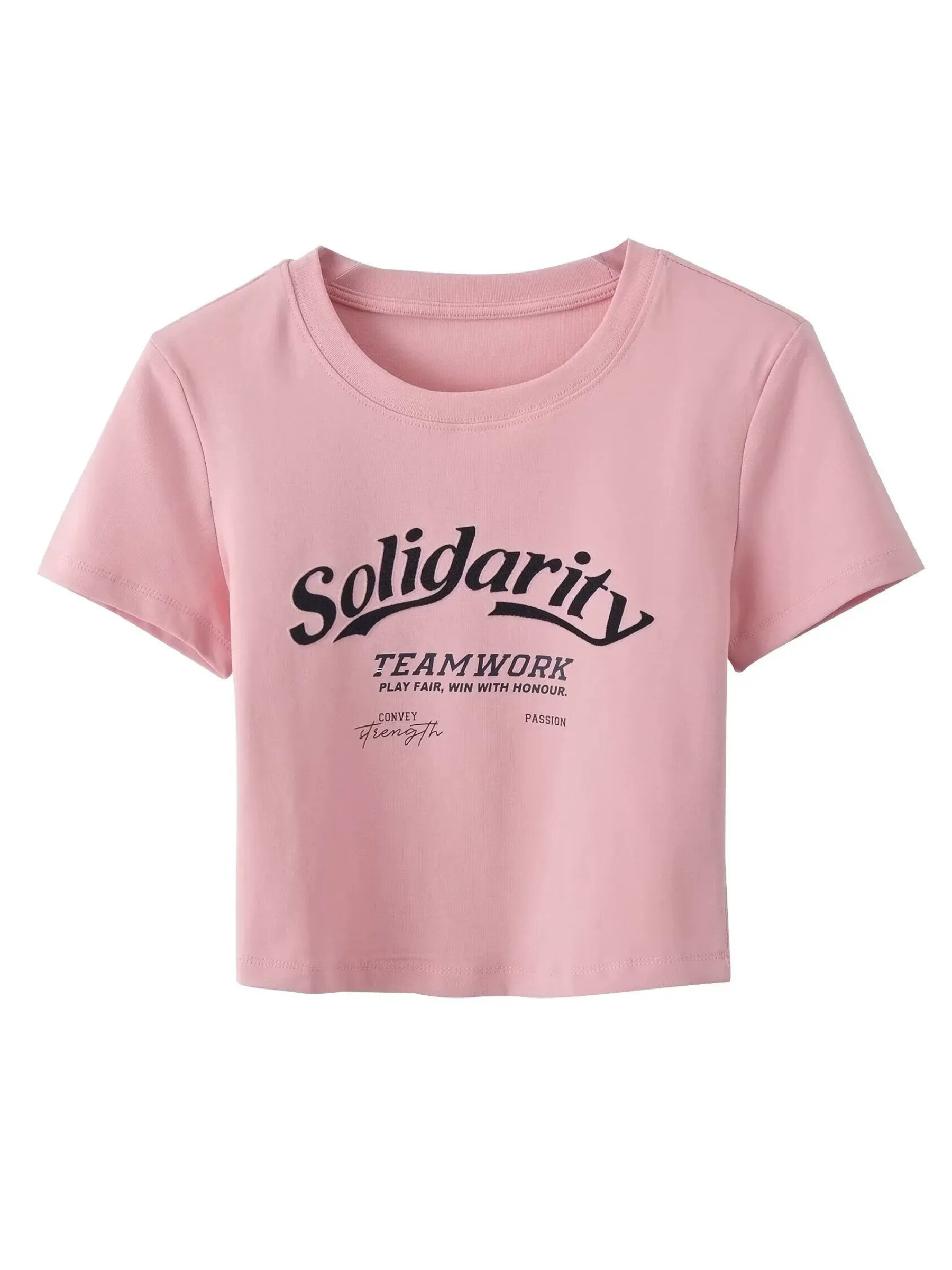 Hasset Letter Print Crop Top redefines effortless chic with its playful yet sophisticated charm. Crafted in a delicate pink hue, this slim-fit top features a classic round neckline and short sleeves, making it a versatile piece for any contemporary wardrobe. Its distinctive letter print adds an edgy touch, ensuring you stand out with understated elegance.