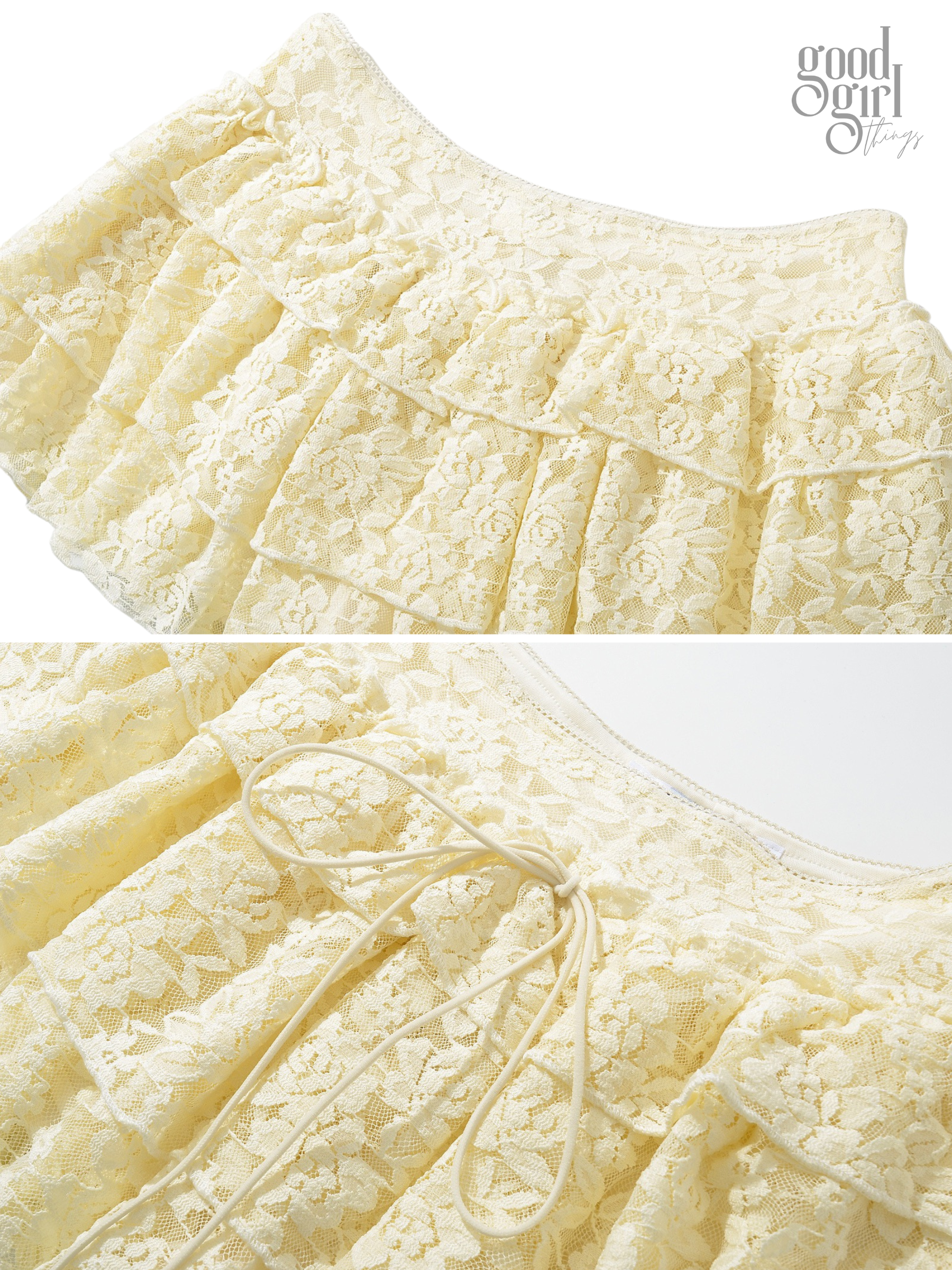 Embrace playful elegance with the Jayne Tiered Lace Mini Skirt, a captivating piece designed to charm. This low-rise silhouette showcases beautifully intricate lace detailing along each delicate tier, creating a whimsical and feminine allure. Available in classic black and vibrant yellow, this skirt is perfect for making a sweet statement.