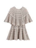 Embrace effortless charm with the Joi Layered Lace Knit Top. This delicate grey pullover offers a fresh take on summer style, featuring an intricate jacquard mesh texture that adds depth and allure. Designed with gracefully layered, ruffled edges on the sleeves and hem, it creates a subtly romantic silhouette perfect for warm-weather adventures. Pairs effortlessly with high-waisted denim shorts or a flowy midi skirt for an elegant yet relaxed look.
