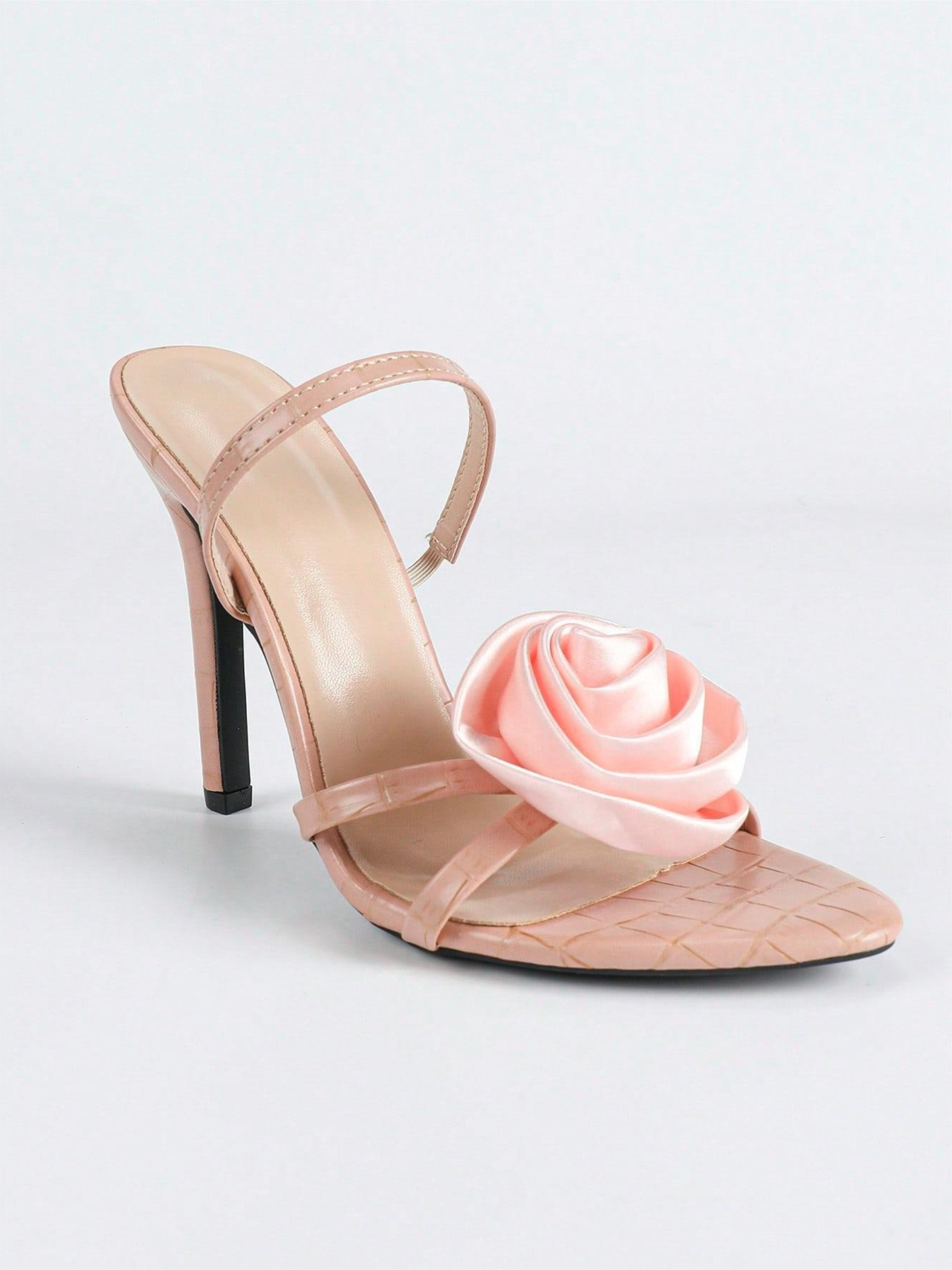 Step into elegance with the Katlyn Floral Stiletto Sandals, a truly captivating pair designed to elevate any ensemble. These stunning pink high heels feature intricate three-dimensional floral embellishments on the toe strap, adding a touch of whimsical sophistication. With their sleek silhouette and delicate ankle strap, they promise to make a memorable statement at any event.