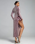 The Kaylin Sequin Bow Slit Gown embodies effortless glamour, designed for those who command attention. This stunning champagne maxi dress is fully adorned with shimmering sequins, catching the light with every movement. Its sophisticated silhouette is elevated by a daring thigh-high slit and a dramatic, structured bow accent at the back, making it perfect for your next elite event.
