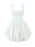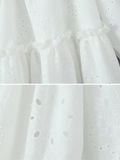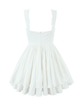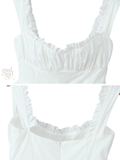 Unveil your playful side with the Keily Backless Ruffled Mini Dress, a vision of sweet elegance. This crisp white mini dress features a chic square neckline and delicate spaghetti straps, perfectly complementing its flirtatious tiered ruffle skirt. Designed for sun-kissed days and vibrant nights, it captures an effortlessly charming allure, pairing perfectly with delicate sandals for a sun-kissed look.