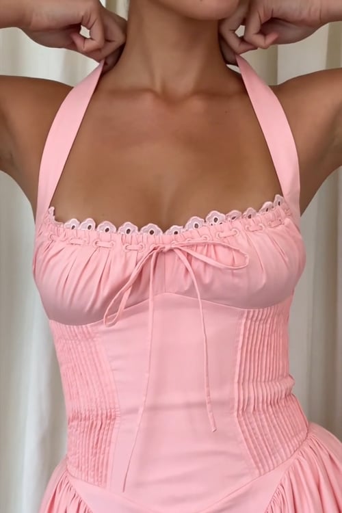 Khali Pleated Halter Midi Dress captures effortless elegance with its serene silhouette, perfect for sun-drenched days and twilight evenings. Available in a spectrum of sophisticated shades including gentle Pink, crisp White, and vibrant Red, this dress is designed to drape beautifully, creating a movement that’s both enchanting and chic. Its delicate design features slender straps, ensuring a graceful profile for any occasion.