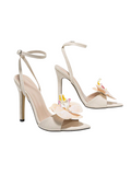 Step into refined elegance with the Lakota Blossom Stiletto Sandals. These captivating apricot-hued heels feature a chic pointed toe and slender straps that gracefully frame the foot. A stunning three-dimensional blossom adorns the design, adding a touch of whimsical sophistication to your stride. Pairs beautifully with an elegant gown or sleek cocktail dress for a show-stopping look.