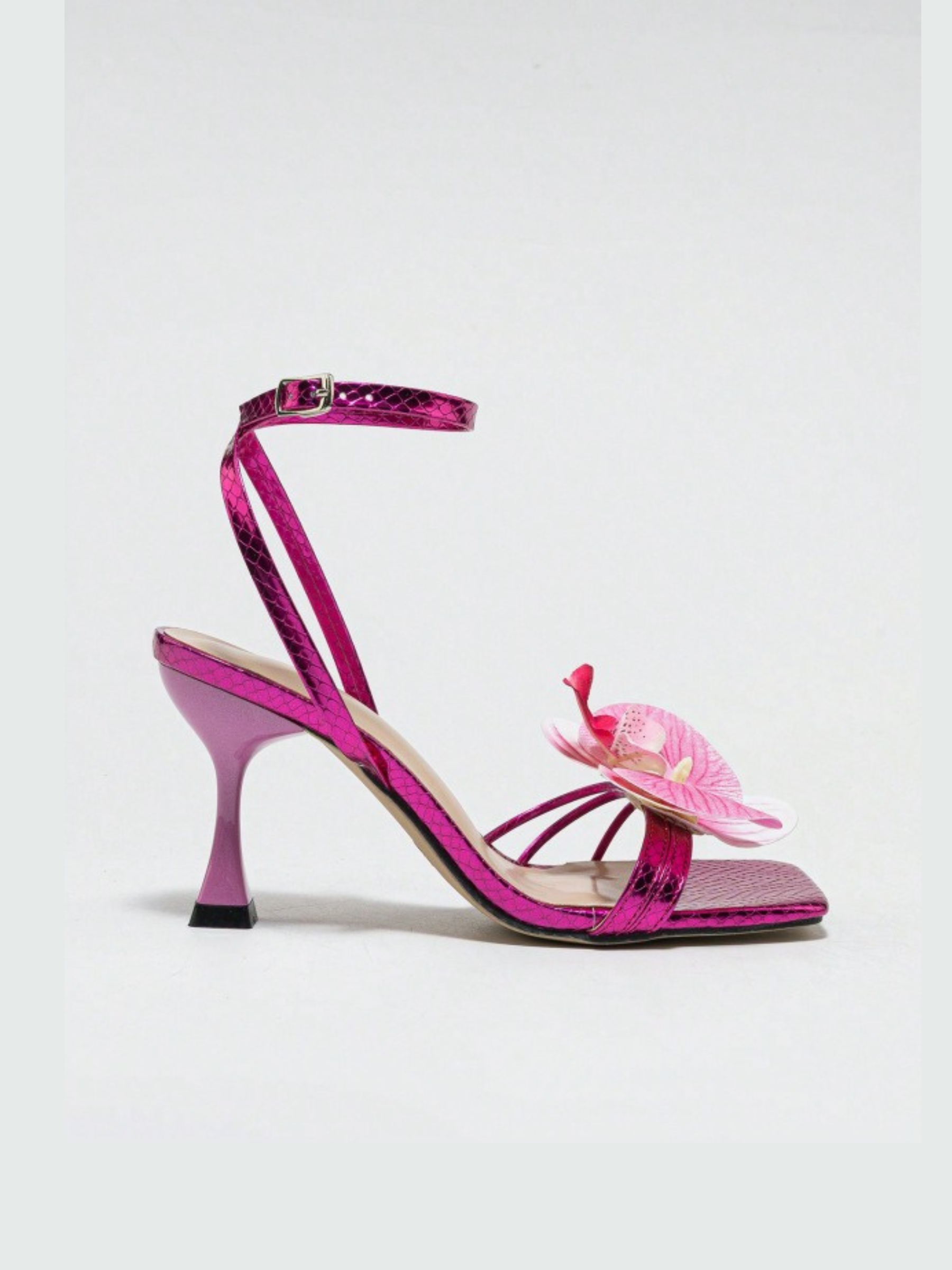 Step into elegance with the exquisite Malana Floral Strap Heels. These stunning high heels feature a delicate yet bold three-dimensional floral embellishment adorning the vamp, perfectly complementing their vibrant pink hue. Designed with a chic square toe and graceful cross ankle straps, they promise both sophisticated style and secure wear for your most special occasions.
