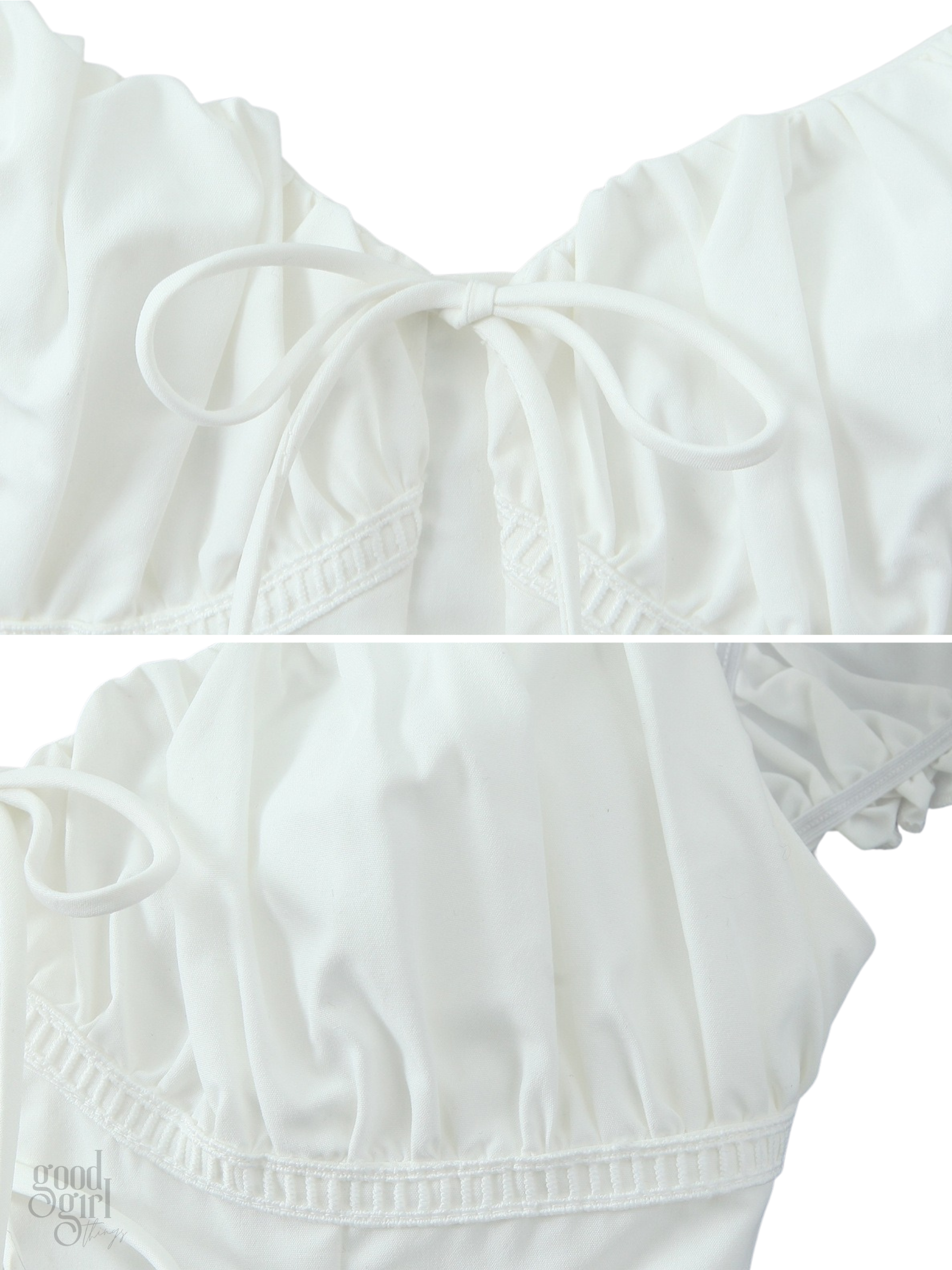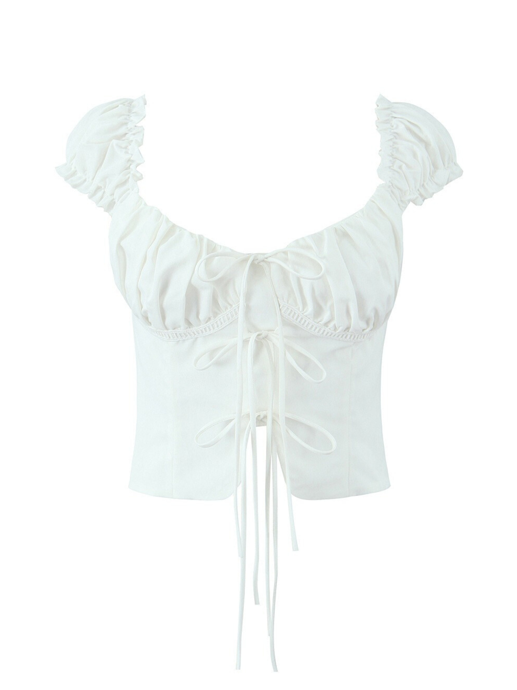 Channel effortless charm with the Naidelyn Puff Sleeve Crop Top, a delightful piece crafted for those who adore a touch of sweet sophistication. Its crisp white hue offers a fresh canvas, while the alluring V-neck and delicate lace-up detail at the front add playful intrigue. Designed to flatter, this cropped silhouette promises a captivating look from every angle, making it perfect for sun-kissed days and vibrant nights.