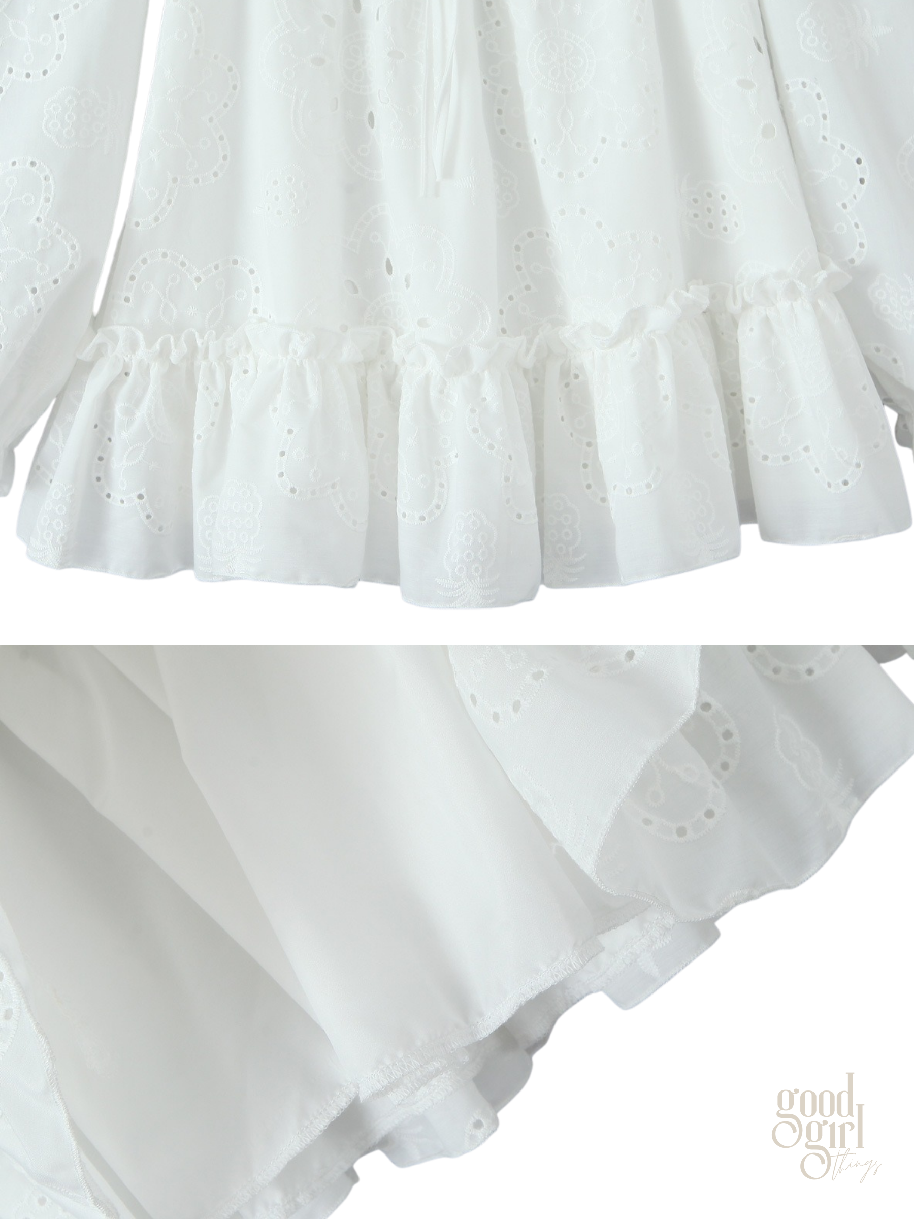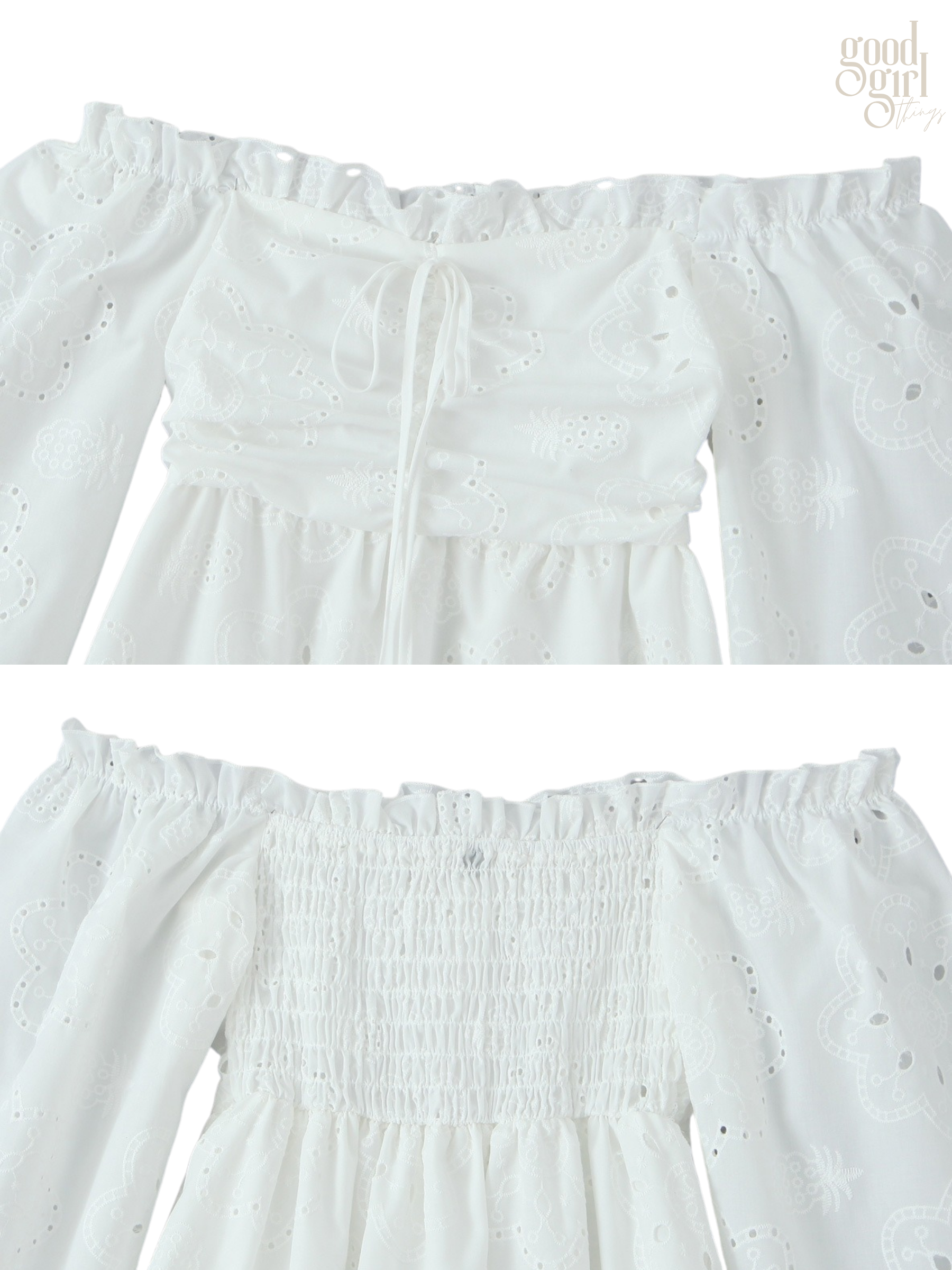 - Elegant long lantern sleeves with subtle cut-out detailing