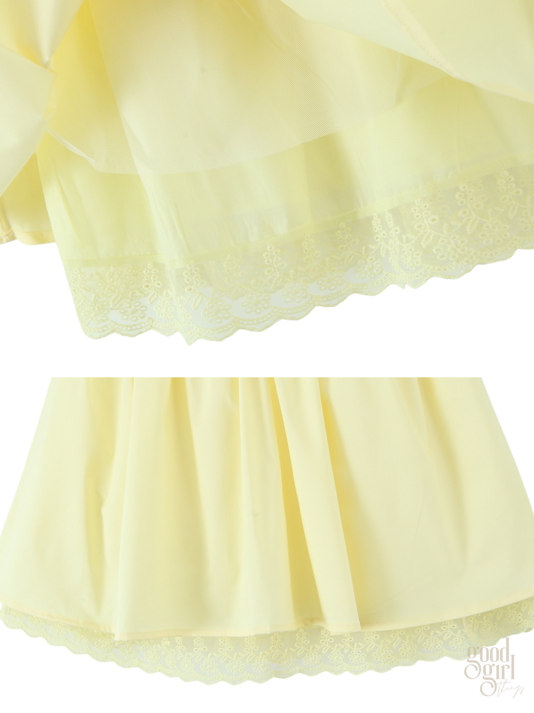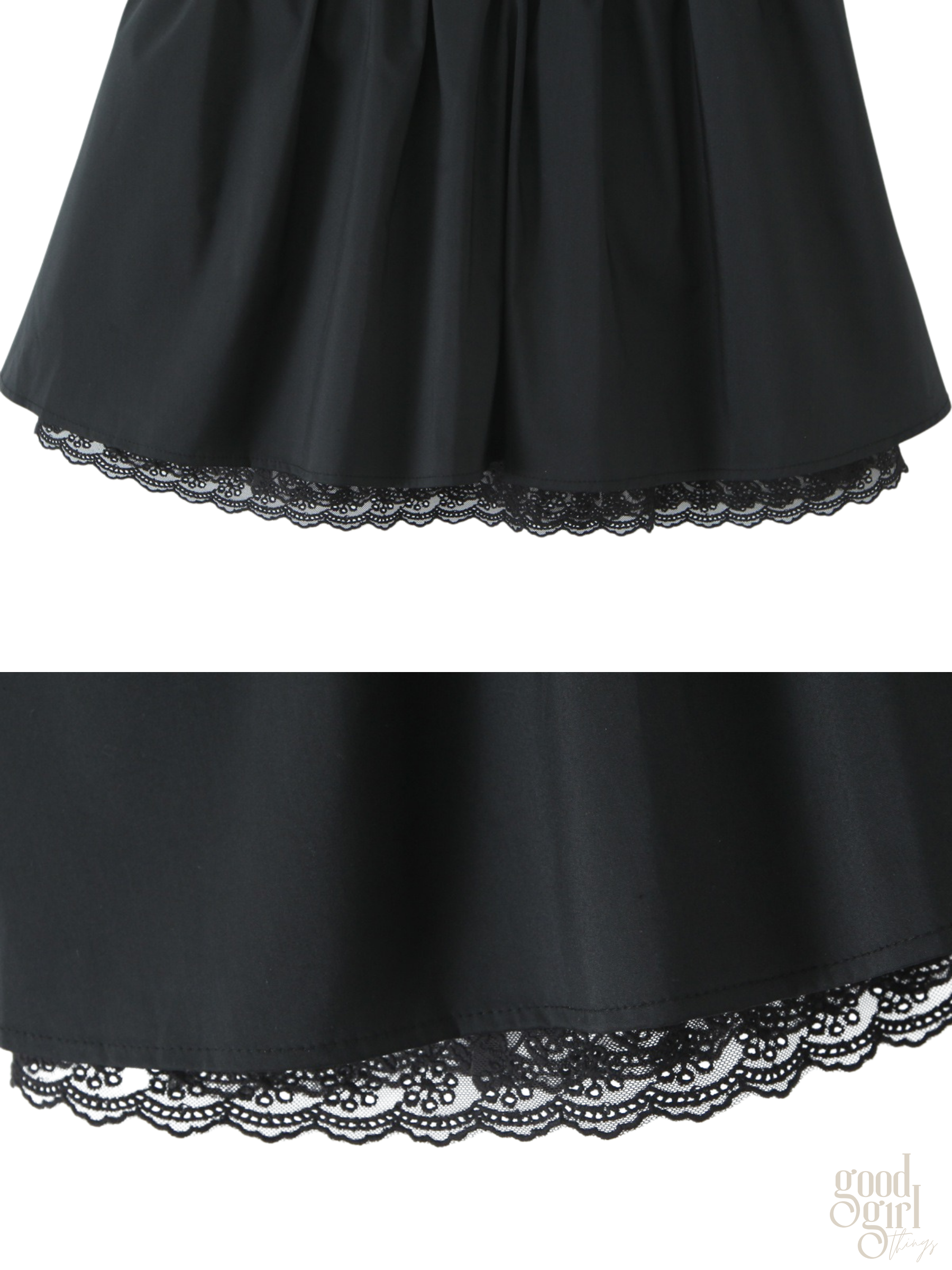 - Delicate lace overlay detailing throughout the bodice and skirt.