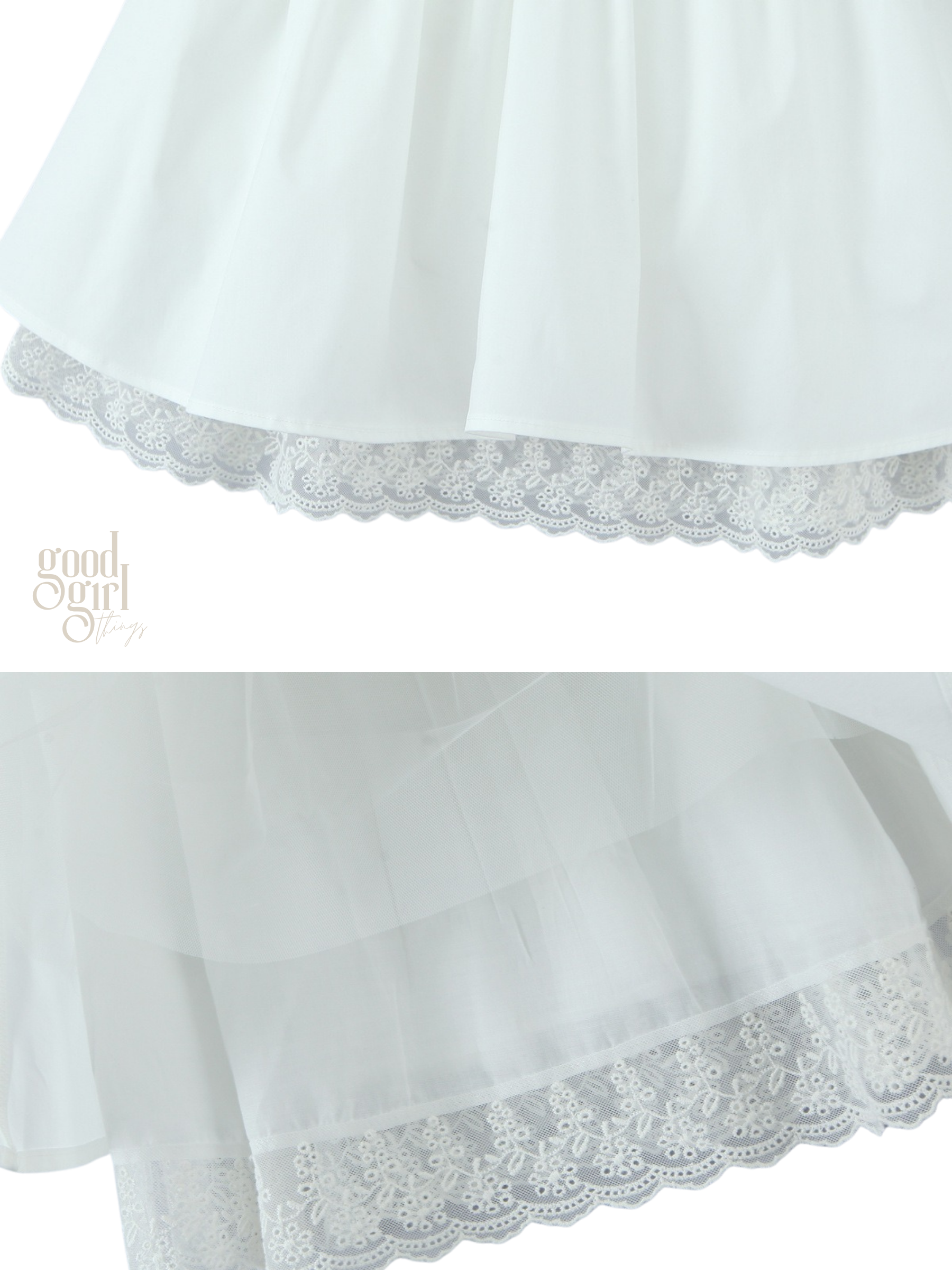- Flattering A-line mini skirt creating a playful 'tutu' effect.