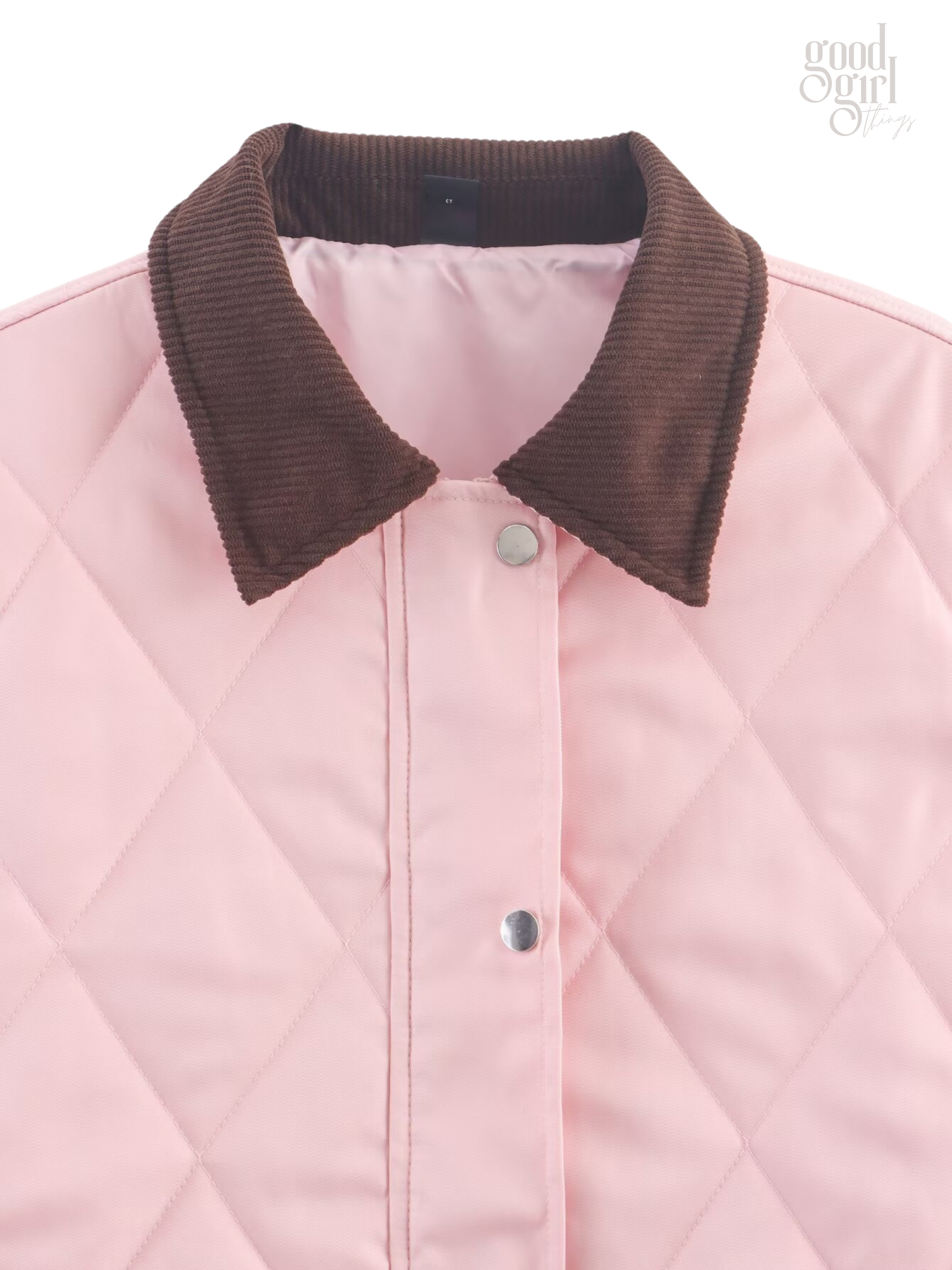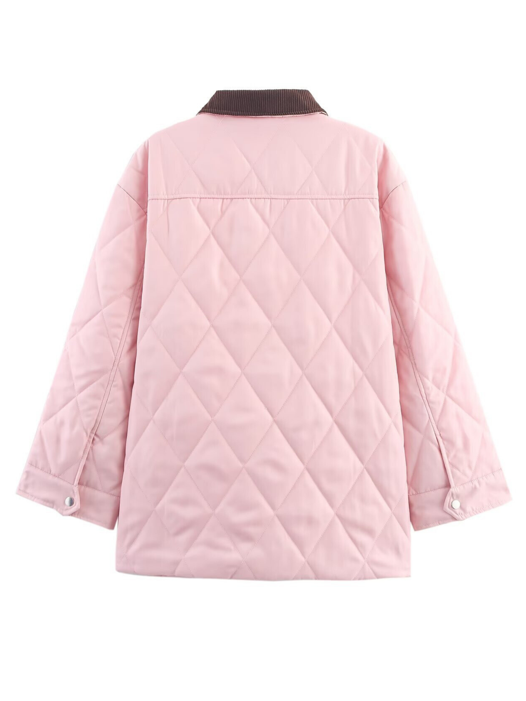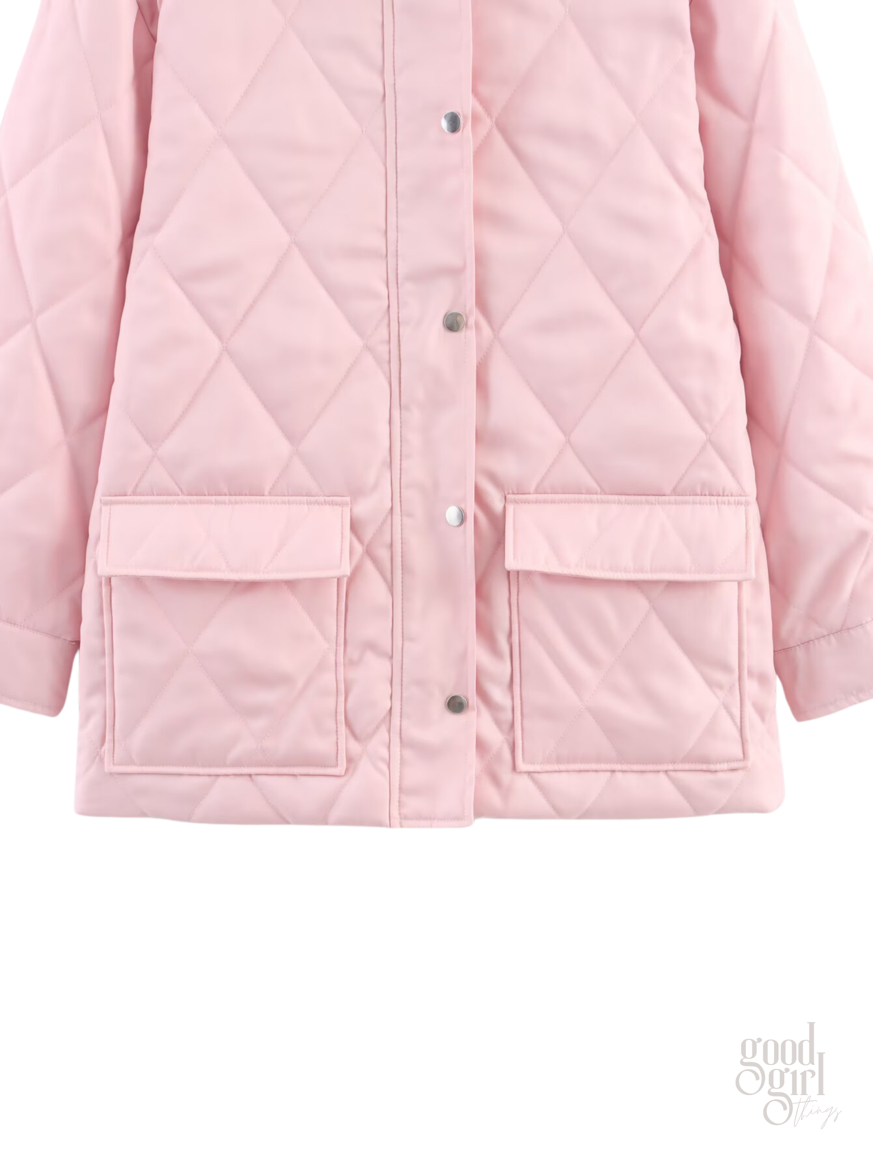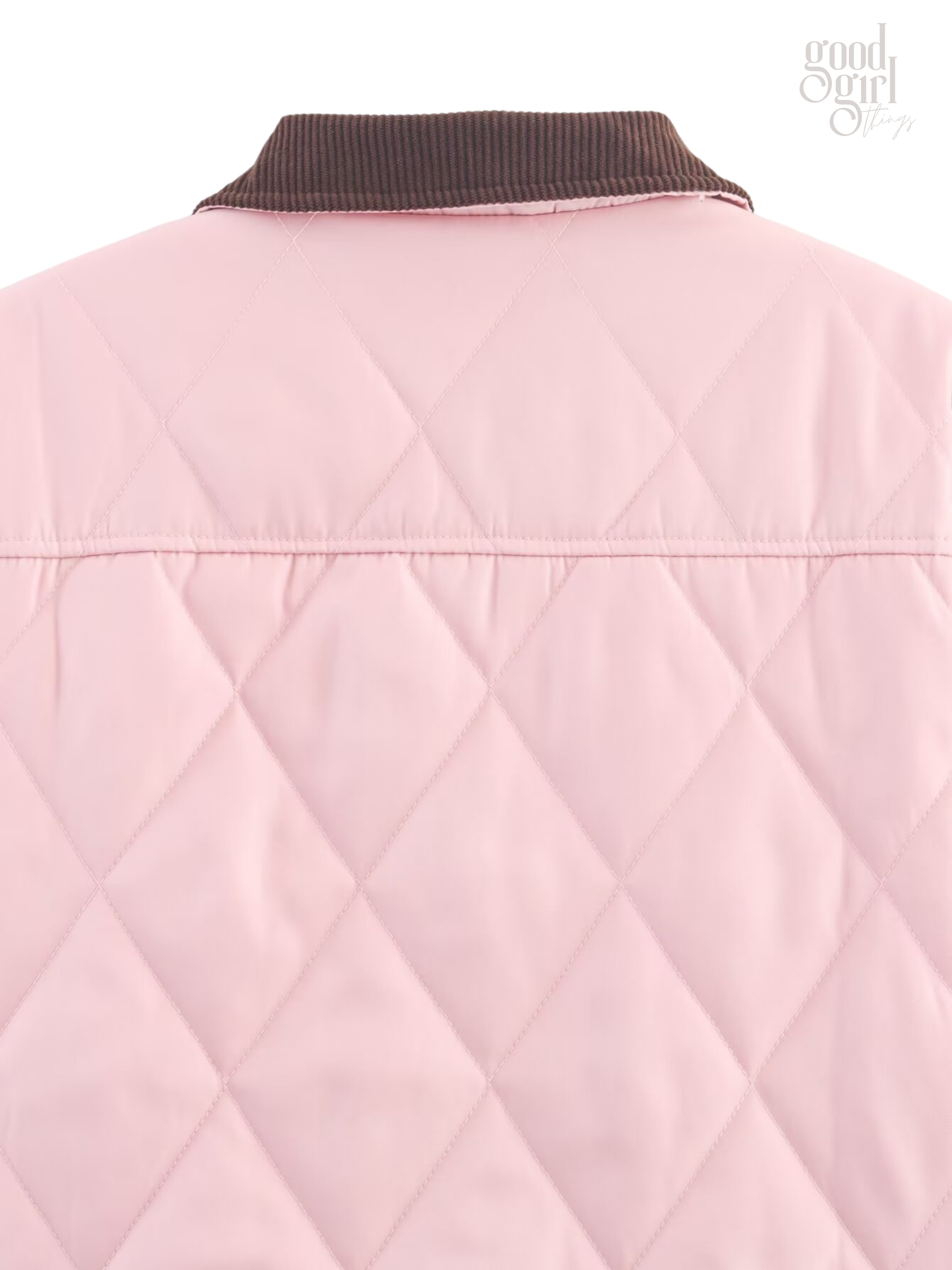 Embrace cozy elegance with the Ryder Pink Quilted Utility Jacket, a modern staple for cooler days. This charming outerwear piece features a soft pink hue and a distinctive diamond quilted pattern throughout, offering both warmth and a touch of playful sophistication. Its relaxed silhouette makes it an effortlessly chic addition to any wardrobe, perfect for layering over your favorite autumnal ensembles.