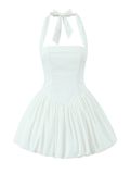 Embrace effortless charm with the Sahasra Bow Halter Mini Dress, a perfect blend of playful sophistication. This stunning piece features an elegant halter neckline adorned with a stylish bow detail, flowing into a flattering fitted waist. Crafted for those sun-drenched days and unforgettable nights, it's available in pristine white and a vibrant red, exuding undeniable allure.