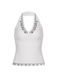The Sanya Embroidered Halter Top is an exquisite blend of retro charm and modern allure, designed for a captivating summer style. This crisp white piece features a chic V-neckline adorned with delicate lace embroidery, adding a touch of romance to its silhouette. The flattering ruched bust detail enhances its figure-hugging fit, while the sophisticated halter design ensures an elegant and alluring presentation. Perfect for sun-drenched days or vibrant evening outings, this top effortlessly elevates any ensemble, pairing beautifully with high-waisted denim shorts for a casual-chic look, or with a flowing maxi skirt for a more bohemian vibe.