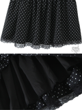 Embrace a playful elegance with the Sky Polka Dot Lace Mini Dress. This charming black and white polka dot design features delicate spaghetti straps and a flattering A-line silhouette. Perfect for warm weather, its intricate lace trim adds a touch of romantic allure, making it an ideal choice for a sophisticated yet fun look.