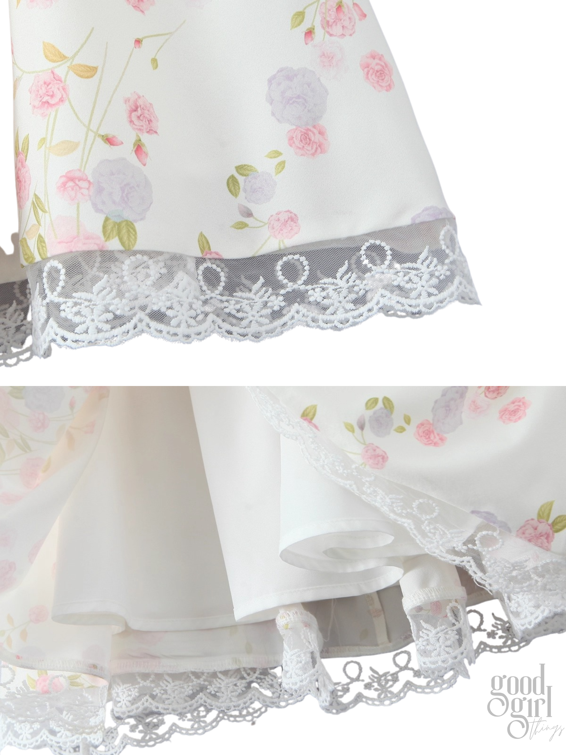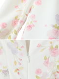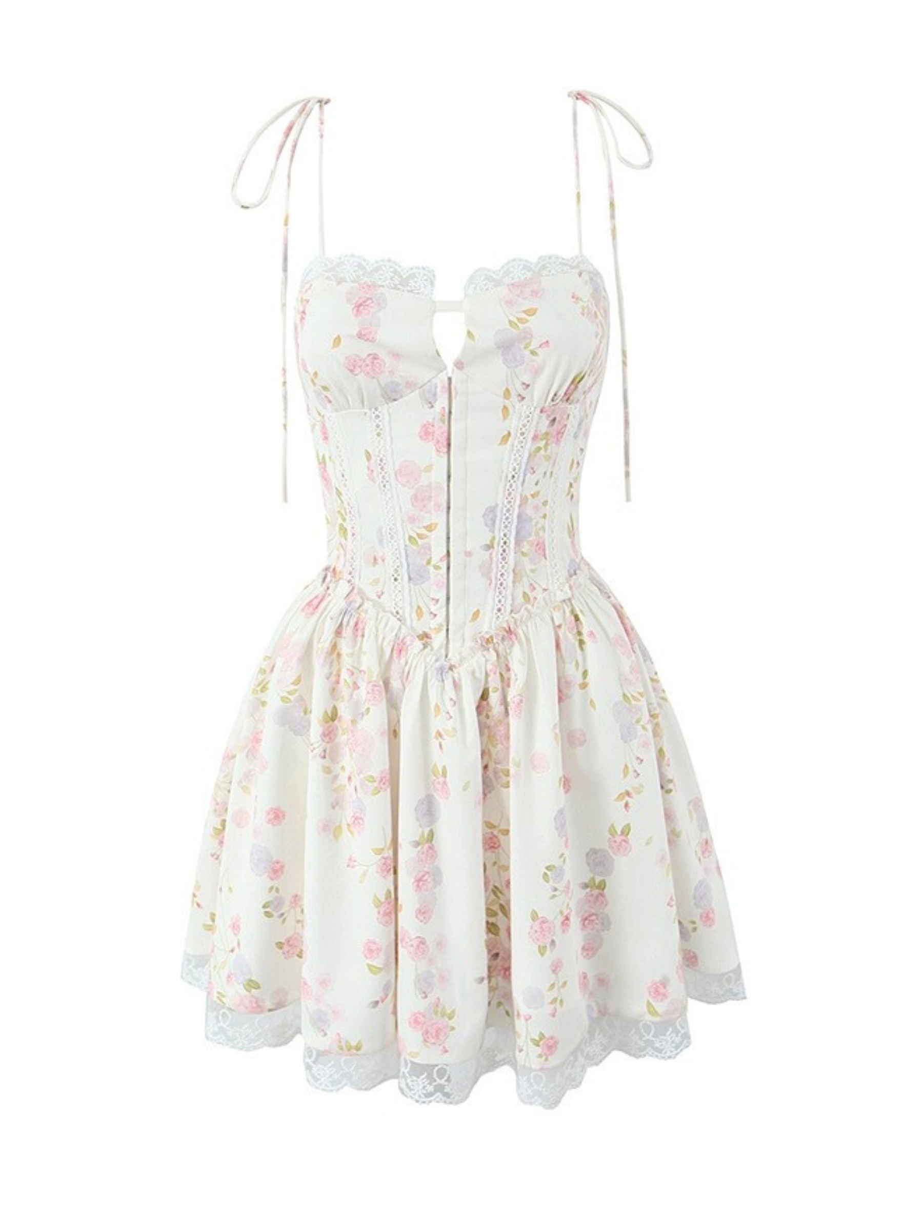 Introducing the Trista Rose Lace Mini Dress, a vision of romantic charm. This ethereal piece, in a soft, dreamy off-white hue, is adorned with a delicate floral print that evokes a blooming garden. Its intricate lace splicing adds a touch of vintage elegance, perfect for sun-drenched days. Pairs perfectly with delicate sandals for an enchanting spring look.