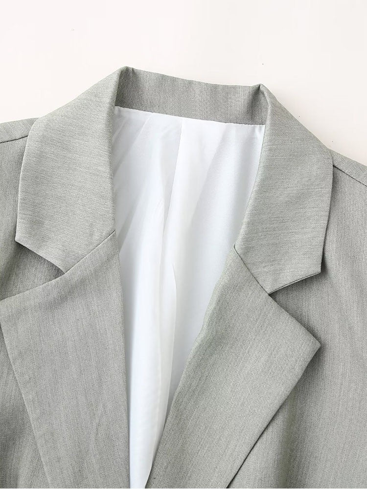 Embrace sophisticated style with the Uriah Tie-Waist Blazer, a modern essential in a sleek charcoal grey hue. This impeccably tailored blazer features a classic lapel collar and a flattering, cinched waist, secured by a chic self-tie detail. Its refined silhouette effortlessly elevates any ensemble, making it perfect for both professional settings and elevated casual looks.