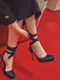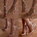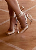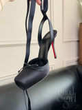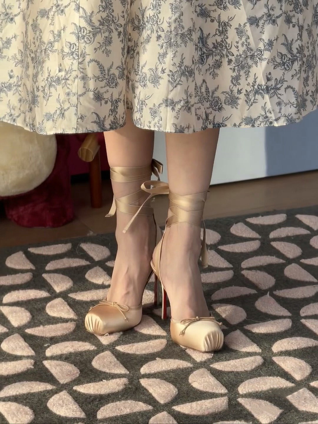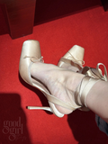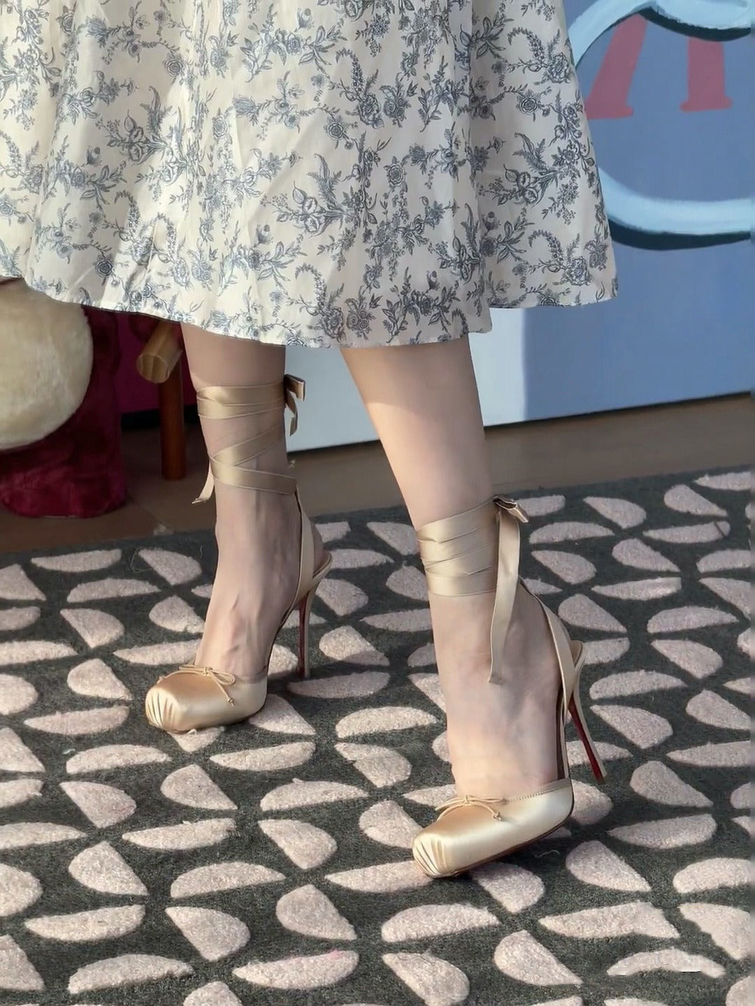 Step into elegance with the Venice Lace Up Ballet Heels, a timeless blend of sophistication and femininity. Crafted from luxurious satin, this pair features a square toe, delicate front bow detail, and graceful ankle straps that tie into a romantic ribbon bow. The iconic red sole and sleek silhouette add an irresistible allure, perfect for evening events, special occasions, or refined daytime looks. With an 8.5 cm (3.3 in) heel, it offers both height and comfort for a confident stride.