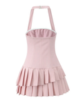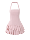 Embrace effortless elegance with the Zaniah Halter Mini Dress, a captivating piece designed to flatter and enchant. This striking mini dress features a chic halter neckline that gracefully frames the décolletage, leading to a daring backless design that ensures an unforgettable entrance. Available in sophisticated Pink and classic Black, its sleek silhouette and shimmering fabric make it a quintessential choice for any upscale occasion. Pair perfectly with delicate heels and a clutch for a sophisticated evening look.